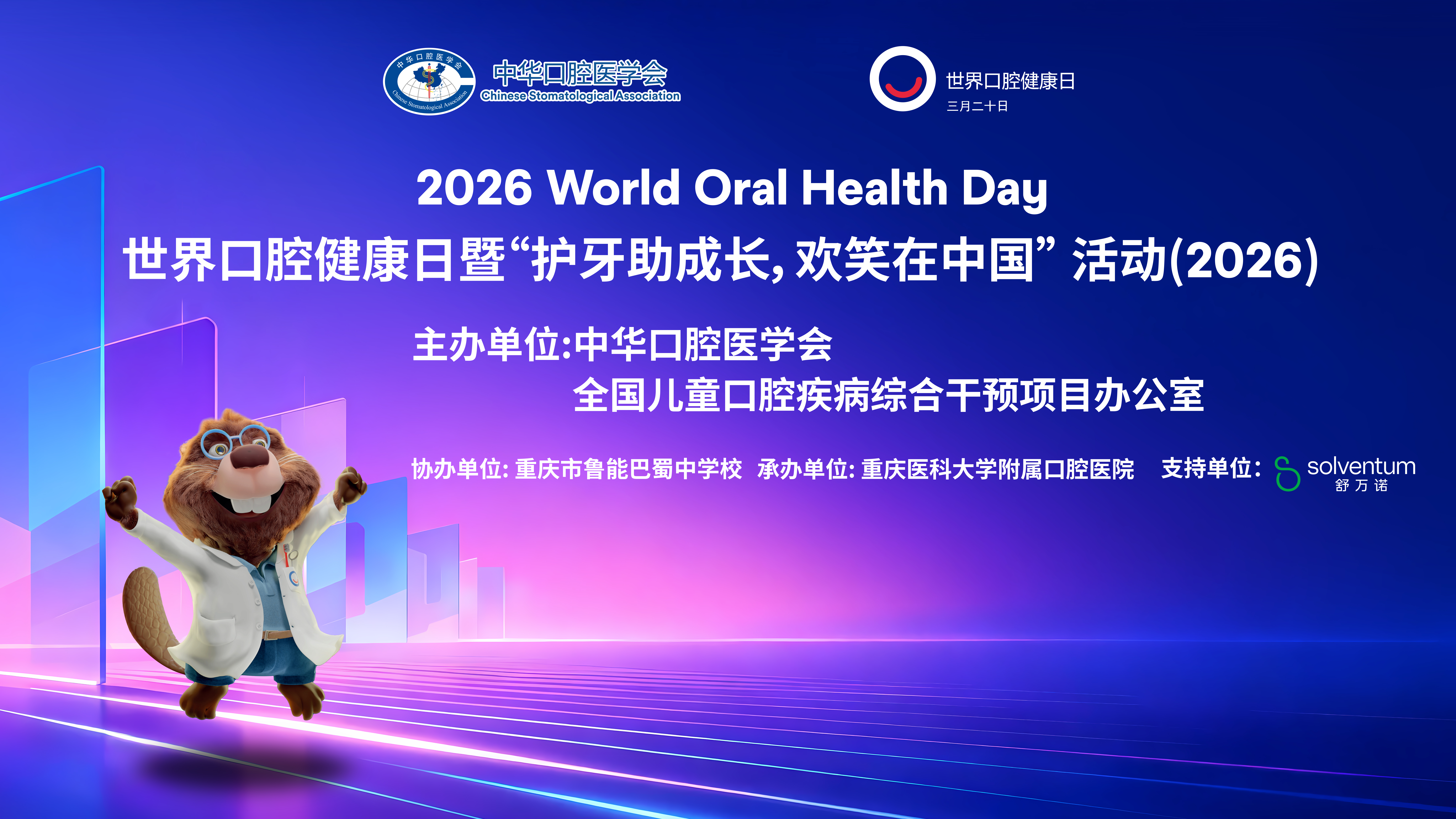 Chinese Stomatological Association is very honored to celebrate World Oral Health Day on March 20th, 2026 in Chongqing, China. The celebration ceremony will be held at Chongqing Bashu Luneng secondary school and various oral education activities, including tooth brushing competition, painting, tooth morphology carving, "diet and tooth" pH experiment demonstration will be followed. CSA is very hornored to have FDI President Assist. Prof. Nikolai Sharkov's presence at the ceremony.