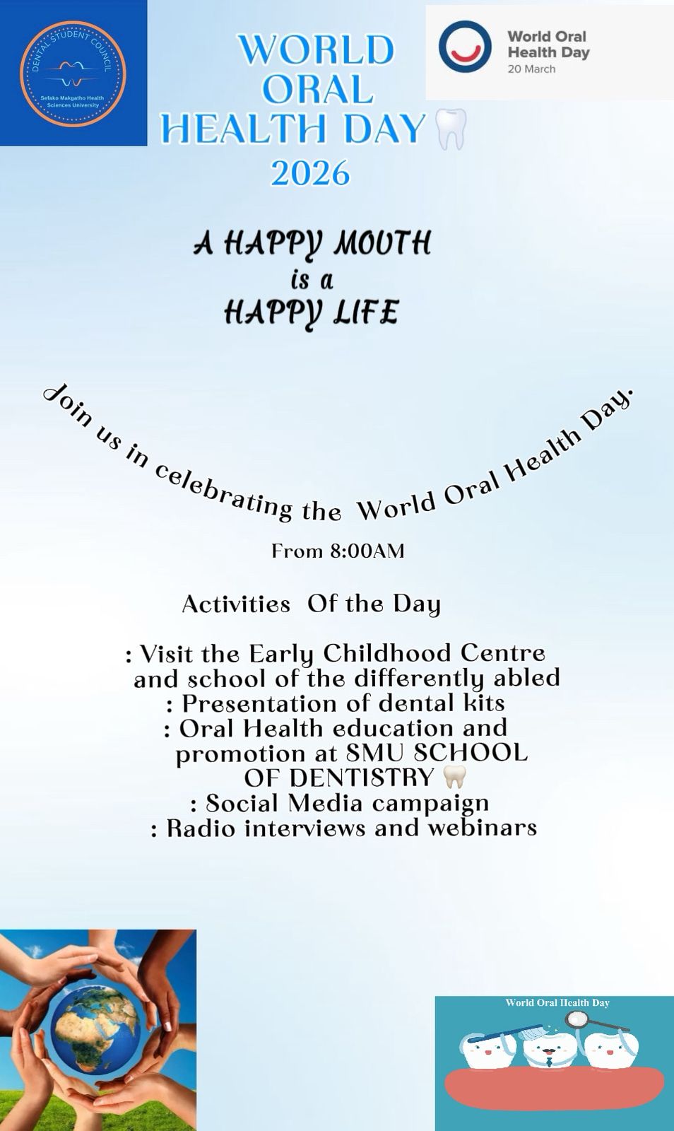 The students at the School of Dentistry in collaboration with The South African Dental Association will be celebrating WOHD by visiting surrounding communities. to offer oral health prevention and promotion.