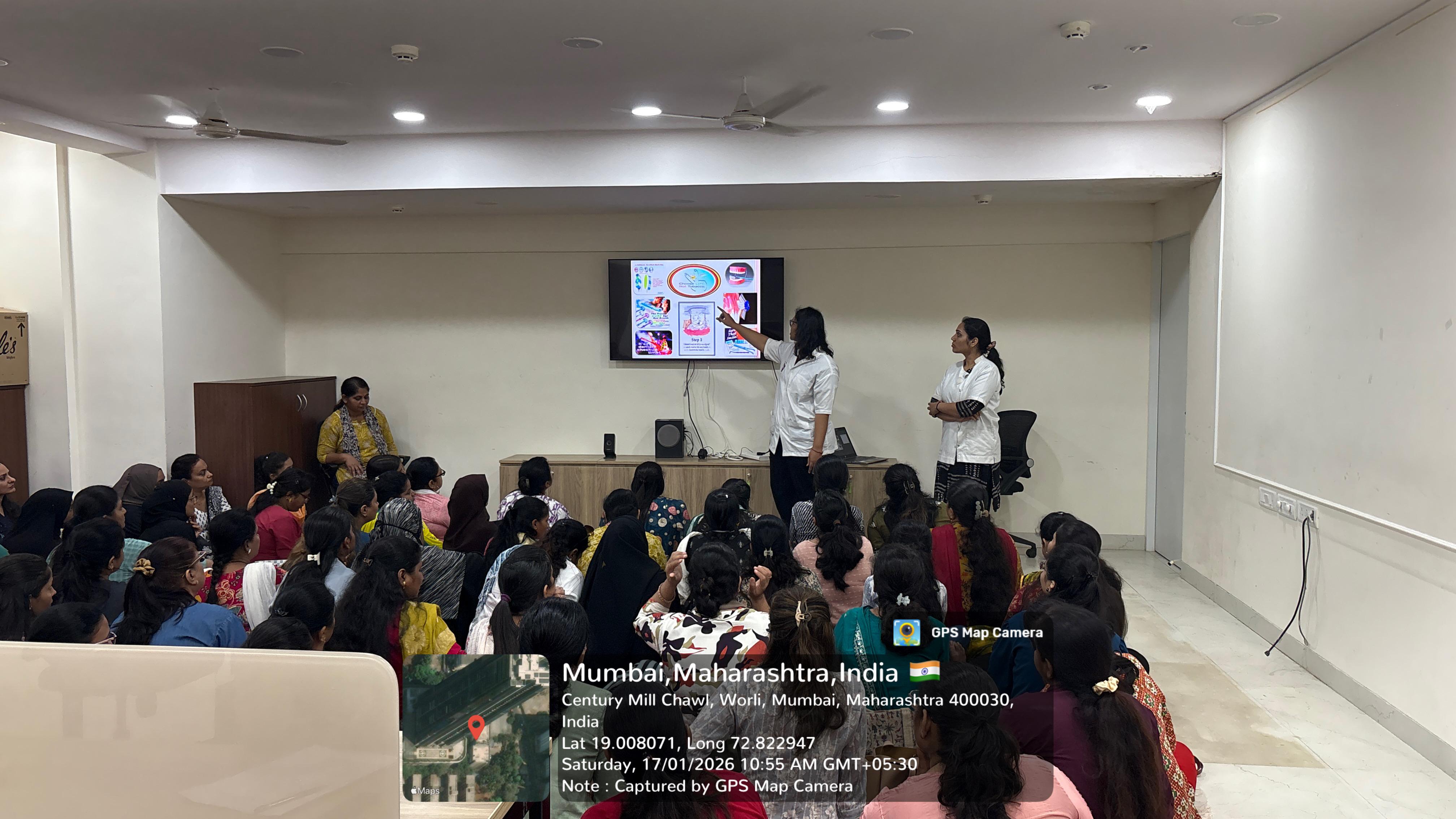 On 17 January 2026, the Department of Public Health Dentistry, Government Dental College & Hospital, Mumbai, conducted a high-impact Oral Health Awareness and Education Camp at Century Mill Chawl, Worli. This session was specifically designed for the educators of the community, furthering the World Oral Health Day 2026 mission: “A Happy Mouth is… A Happy Life.”