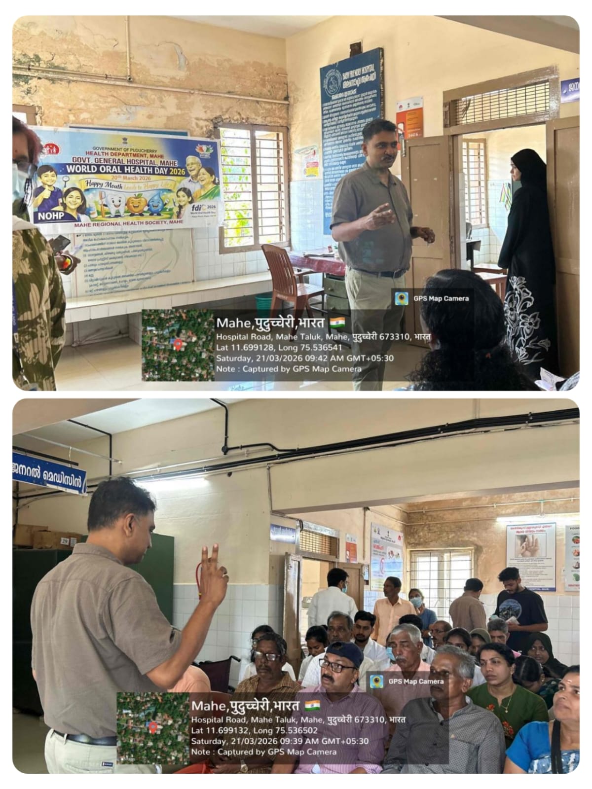 On March 21, 2026, an awareness talk focusing on "Oral Health and Life" was conducted for patients at the Dental OPD, General OPD Block. As part of the World Oral Health Day 2026 celebrations (falling on March 20), the session highlighted the critical link between oral and general health. Topics discussed included the significance of preventive care, the prevention of oral diseases, and the dangers of tobacco and areca nut consumption. The impact of diet on overall oral health was also strongly emphasized.
