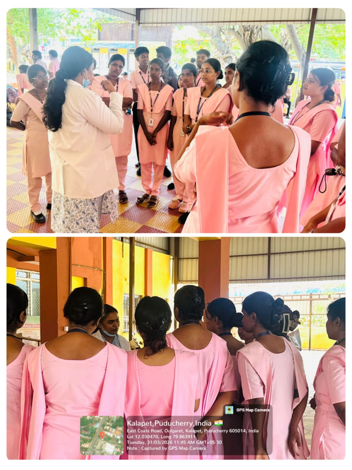 On the occasion of World Oral Health Day 2026, an oral health awareness session was conducted for PIMS Nursing third-year studentsThe session focused on the importance of maintaining good oral hygiene. Proper brushing techniques were demonstrated to ensure effective daily oral care. Information regarding common dental problems during pregnancy and the importance of oral health in antenatal care was also explained in detail.In addition, awareness about the harmful effects of tobacco on oral and general health was provided. Students were educated about various dental procedures carried out at PHC Kalapet, helping them understand the available treatment services at the primary healthcare level. Total 35 students benefited.A signature campaign was organized to promote commitment toward good oral hygiene practices. The session concluded with an interactive question-and-answer segment, where students clarified their doubts.The program was informative and actively participated in by the students.