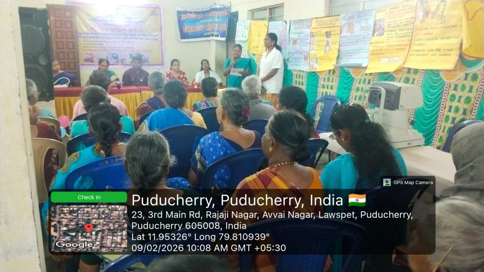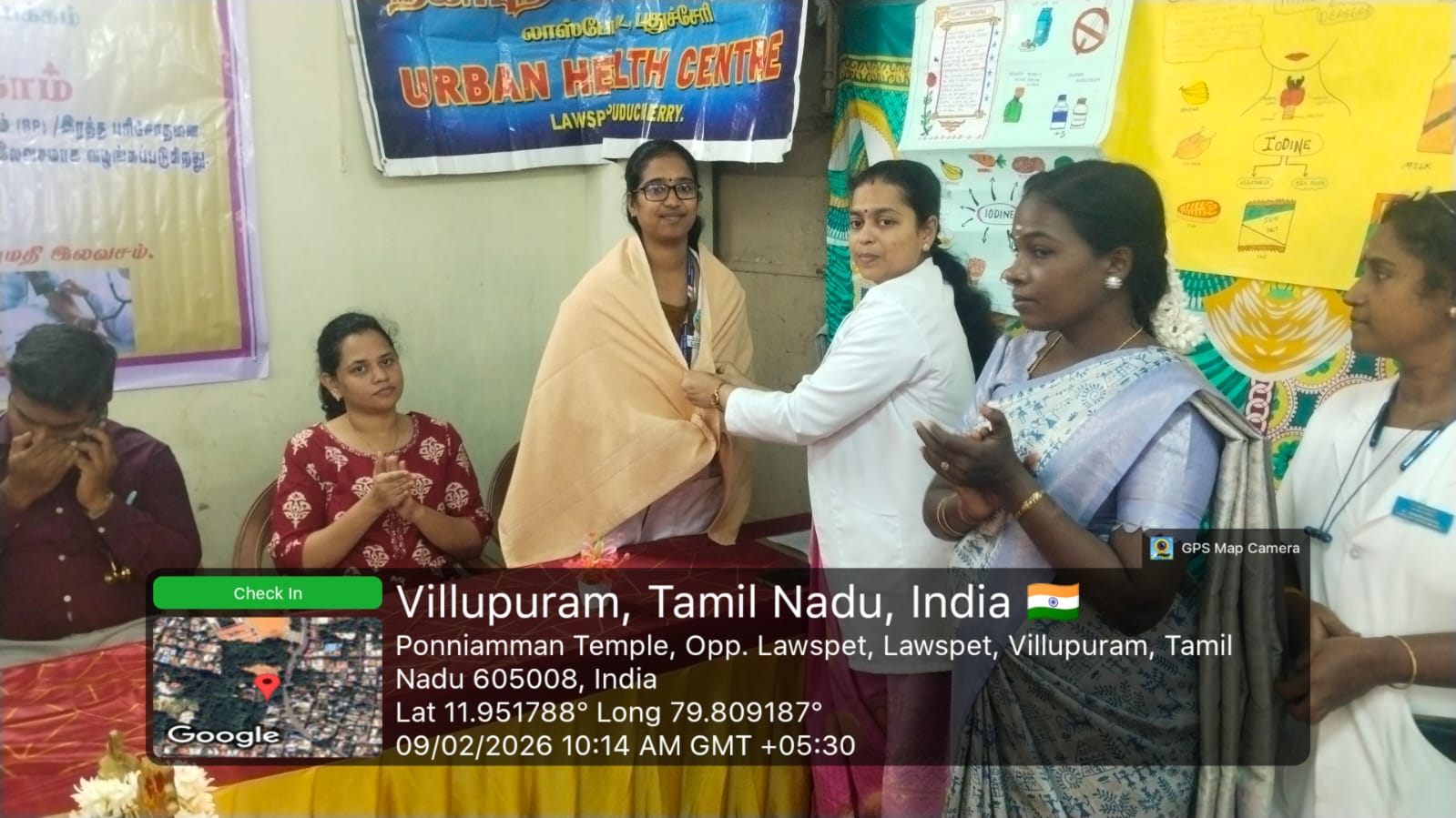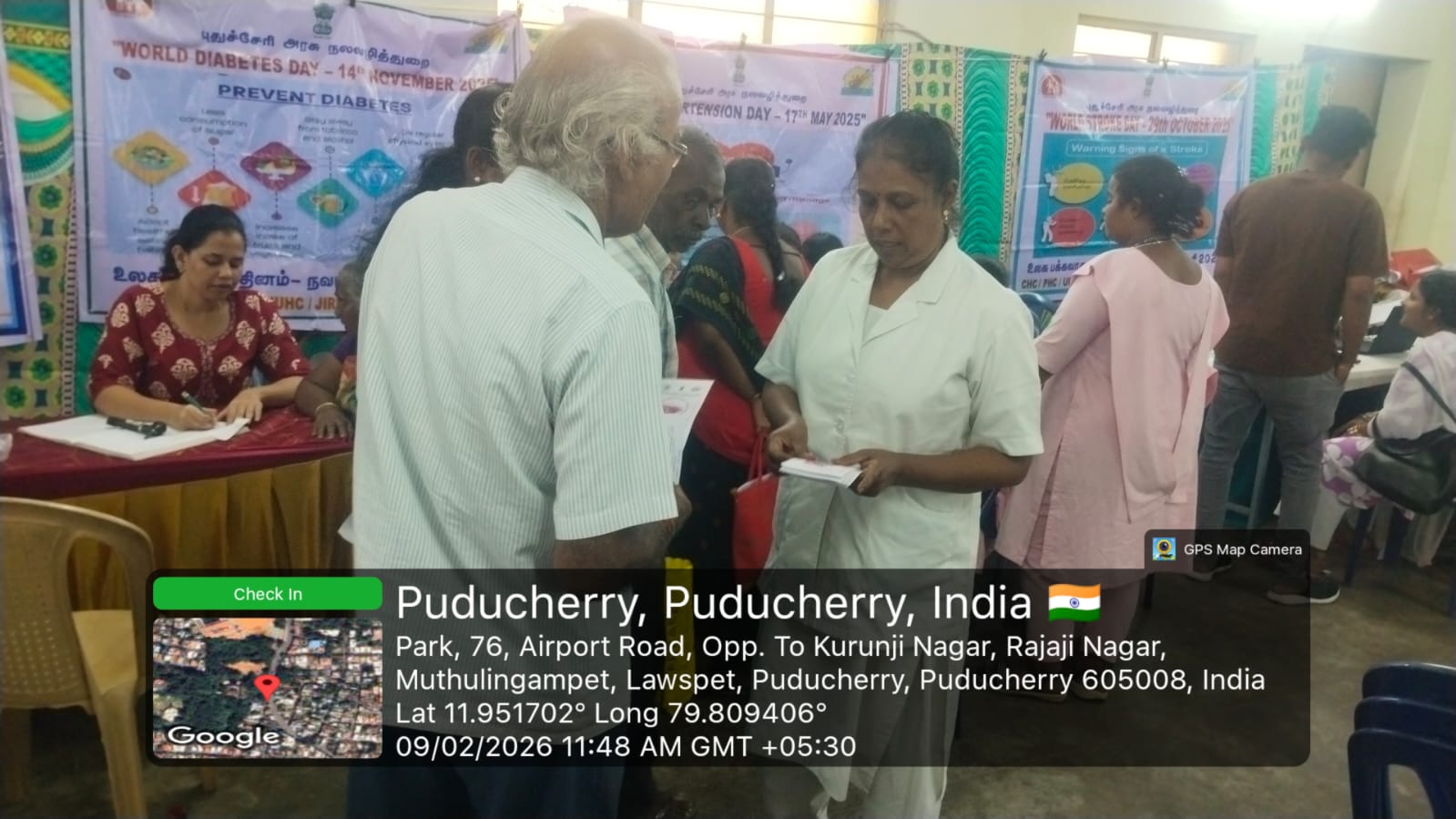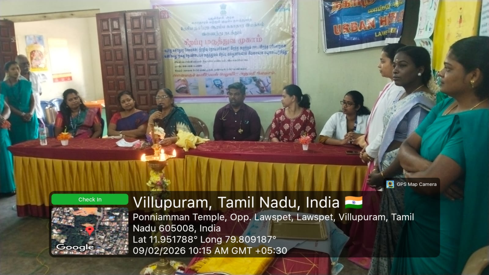 "An Oral Screening and Awareness services were conducted as part of the *Mega Special Health Camp* held at *Ponniamman Koil, Lawspet* by *UPHC Avvai nagar* on 9-2-2026. The camp provided comprehensive health services including dental check-up, blood pressure screening, hypertension evaluation, ENT examination, eye check-up, and general physician consultation. Specialists from various departments actively participated to ensure complete healthcare support for the public.