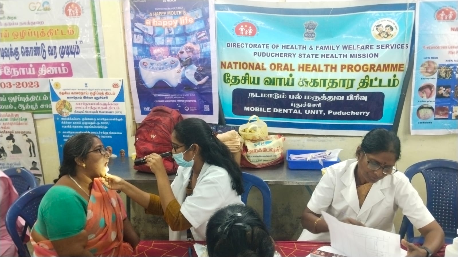 The camp was inaugurated by *Dr. Shamimmunisha,(Deputy Director of Public Health.)* and Dr. Meenu ( MO- Incharge of Avvai Nagar ).Oral cancer screening was carried out for the general public to promote early detection and prevention. Anti-tobacco awareness and dental health orientation sessions were conducted for the general public as well as nursing students of *Mother Theresa Nursing College* to educate them about the harmful effects of tobacco and the importance of maintaining oral hygiene.