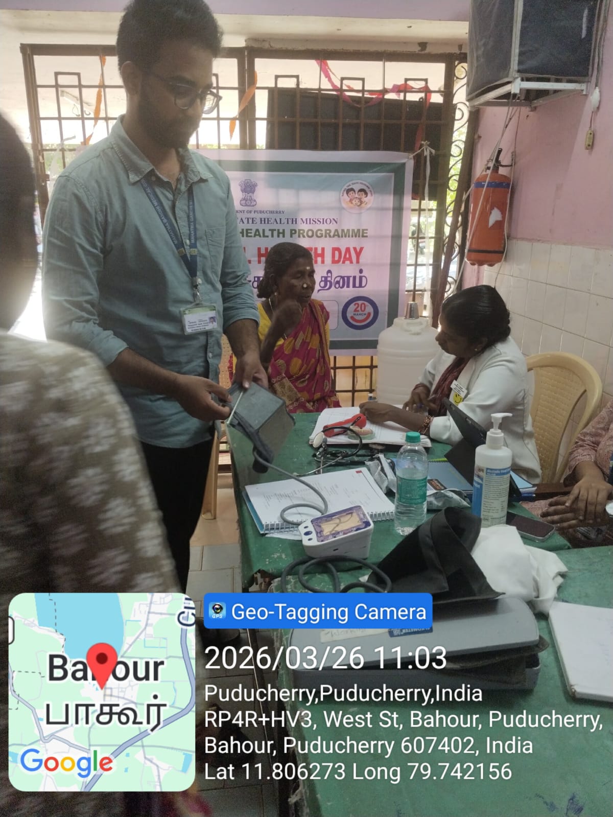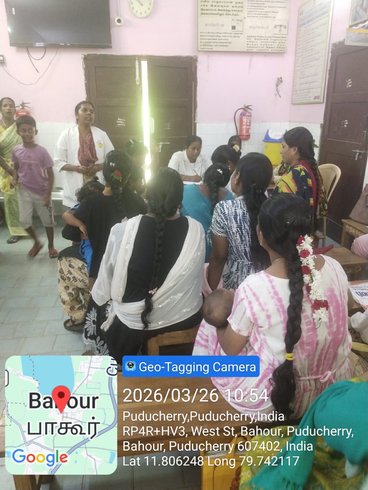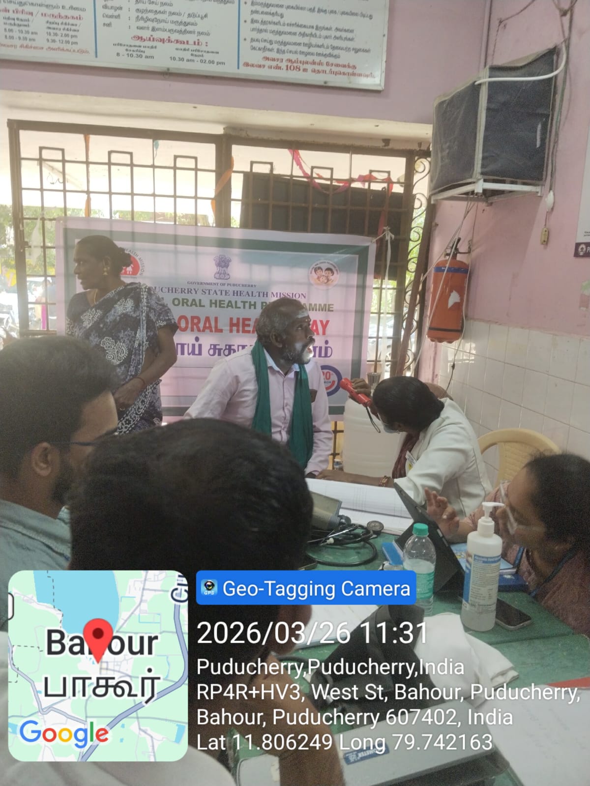 26.03.26 PHC Bahour, Oral Screening Camp ,WOHD 2026World Oral Health Day celebration dental awareness session was conducted for the well baby clinic mothers and general public. The theme “ Happy Mouth is a Happy Life" was explained, highlighting the importance of maintaining good oral hygiene, early detection of dental problems, and promoting oral health awareness among the community participated and gained useful knowledge. On account of World Oral Health Day the theme " A happy mouth is a happy life"& Oral health pamplets distributed.