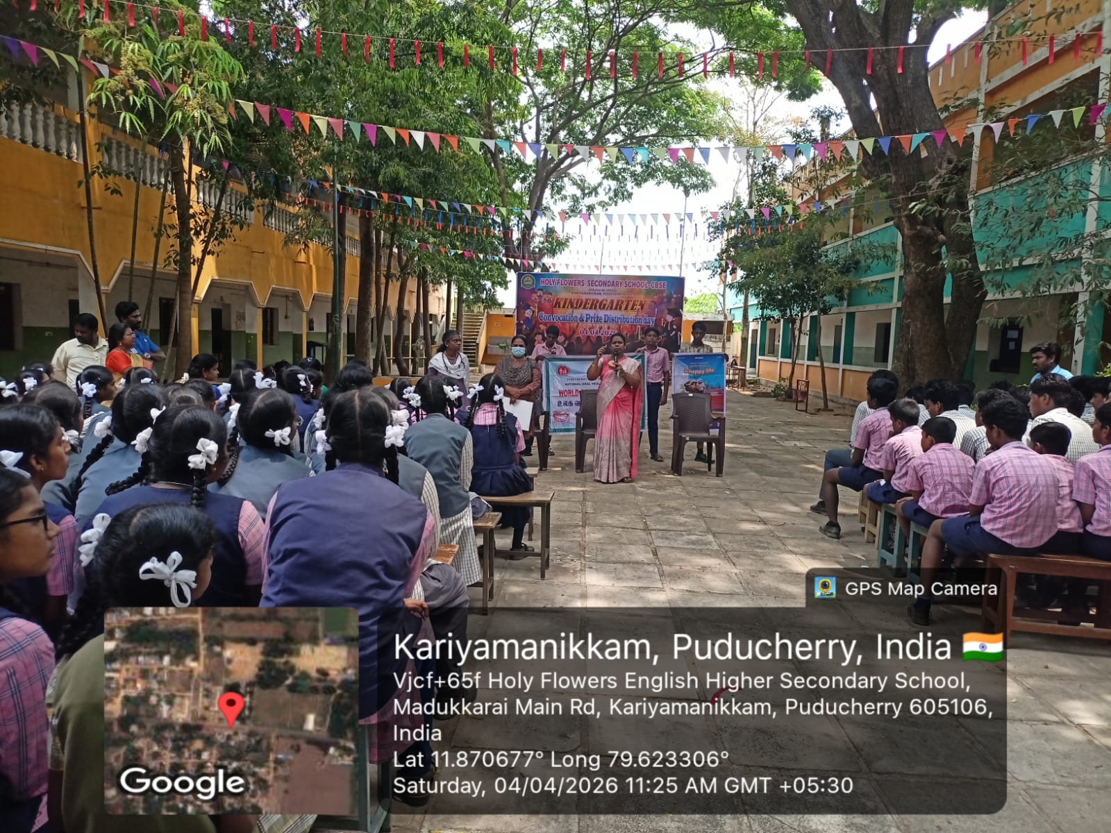 04.04.26 AAM PHC Nettapakkam # WOHD Celebration @ Holy Flowers English Higher Secondary School, Kariamanickam: The students were given awareness on Oral health - Do's and don'ts in oral care, Common dental problems and management, Bad oral behaviours and its intervention and management. Harmful effects of Tobacco and its vulnerability among adolescents were highlighted. Brushing techniques were demonstrated using dental models and posters. Oral health poster and pamphlets were distributed. Oral hygiene pledge was taken.