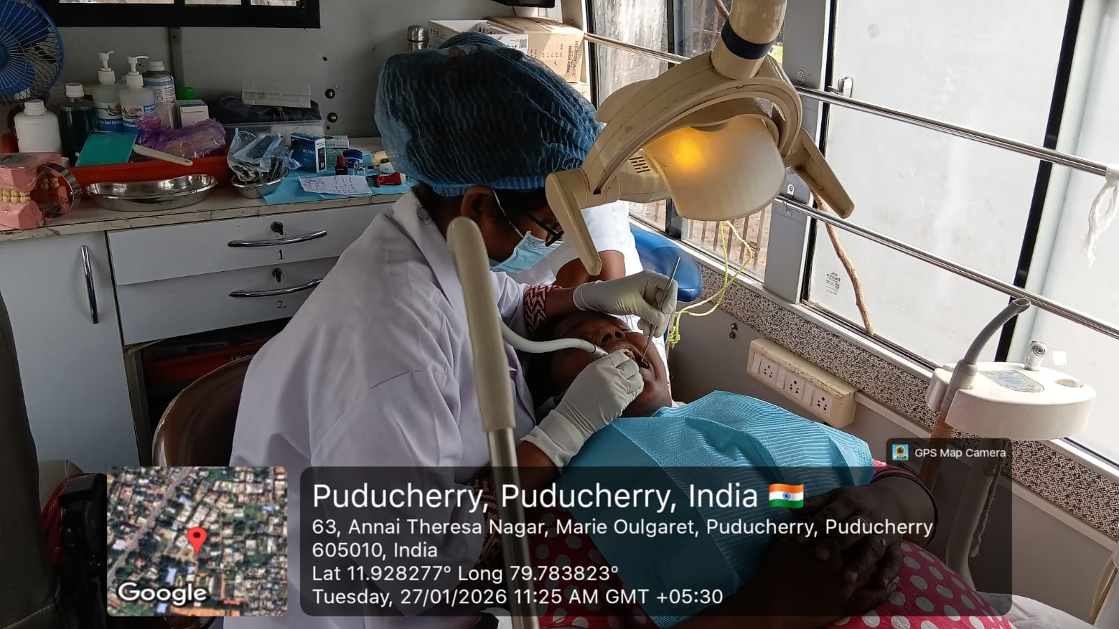 An Oral Screening and trearment camp was conducted at Urban Sub Health Centre , JJ Nagar, Moolakkulam, on 27-01-2026 to promote community oral health. The program included general oral screening and dental check-ups for the public. Awareness on oral hygiene and dental care was provided using dental models and banners.Brushing techniques demonstrations to help participants understand proper brushing techniques and preventive practices. A tobacco awareness talk was also delivered to educate the public on the harmful effects of tobacco on oral health. In addition, special oral hygiene instructions were given to mothers attending the _well-baby_ clinic, emphasizing early dental care for children. Overall, the camp was beneficial, with nearly *53* participants receiving guidance and screening services.