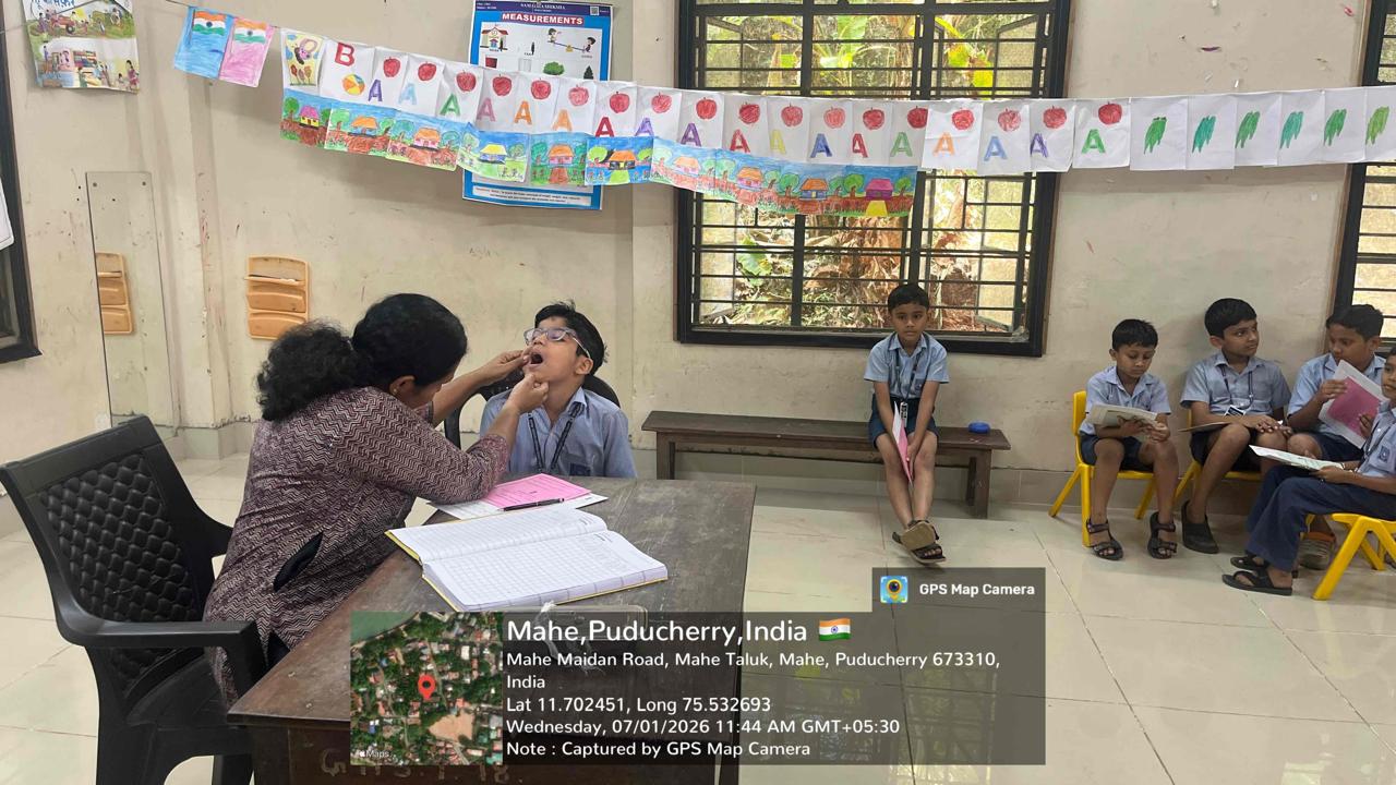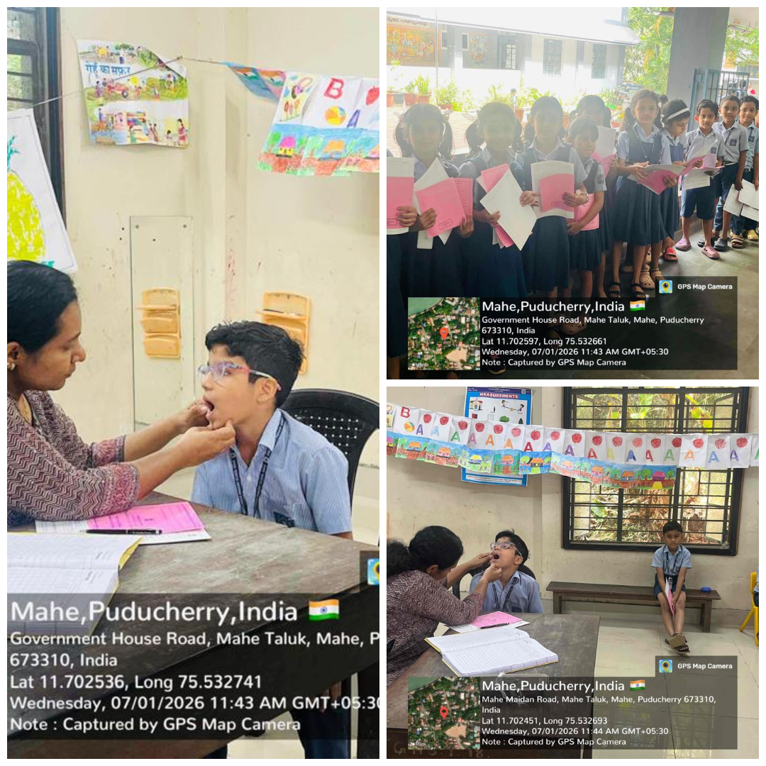 An oral screening and awareness class was conducted on 07/01/2026 at Government Primary School, Mahe for 2nd and 3rd standard students. The program aimed to promote oral health awareness and encourage good dental hygiene practices among children. Students were educated about the importance of regular brushing, healthy dietary habits, and maintaining clean teeth to prevent dental problems. Oral screening was carried out for early detection of dental issues. Students identified with dental problems were referred to CHC Palloor for further evaluation and treatment. A total of 31 students were screened, including 21 boys and 10 girls, benefiting from the initiative to improve their oral health and awareness.