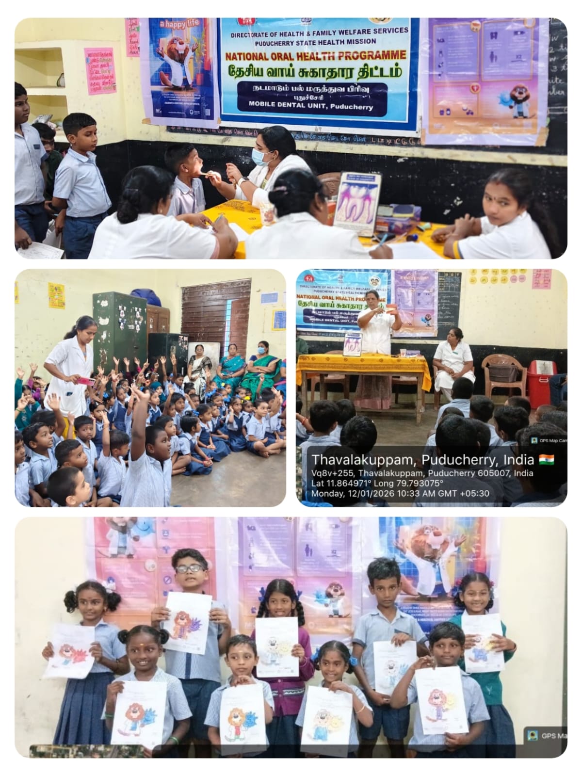 Mobile Dental Unit visited GPS Thavalauppam on 12/1/26. During this camp, oral hygiene awareness class was taken to the students following which oral screening was done . On behalf of Fdi-World Oral health Day celebration, a drawing competition was conducted to the school students. The students were given activity sheets with toothie the beaver to show their colouring skills. This competition highlighted the importance of maintaining good oral hygiene among the students.