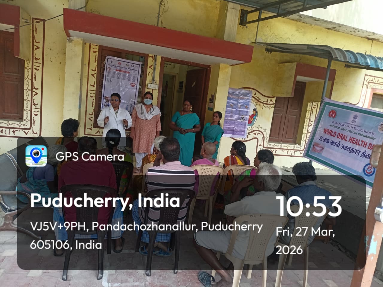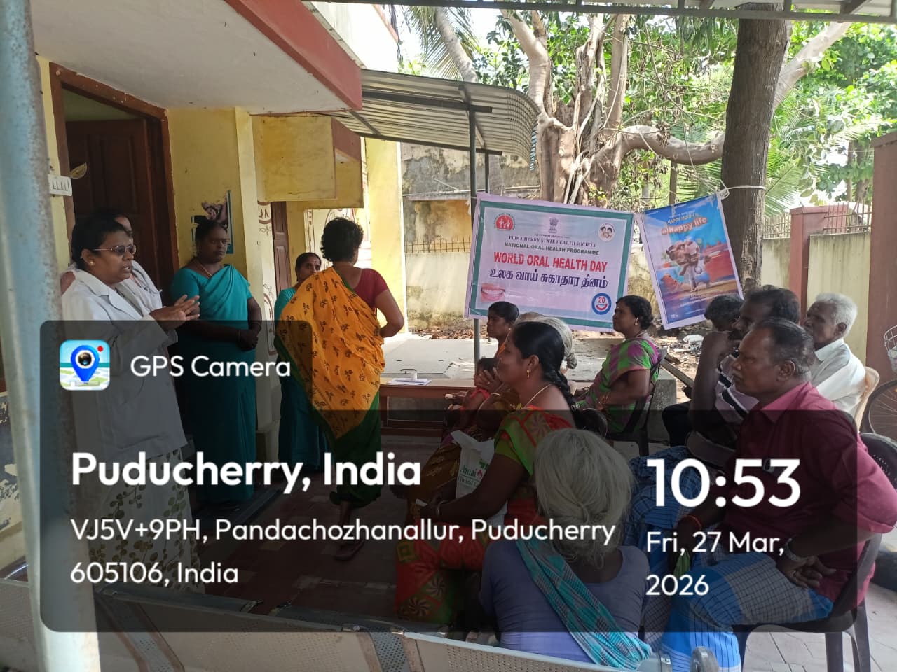 27/3/26 Dental unit- PHC Nettapakkam # WOHD 26 Celebration @ SUBCENTRE PANDASOZHANALLU.The NCD patients were given awareness on Oral Health and its relationship to overall wellness. Do's and don'ts in oral care were explained. Brushing techniques were demonstrated using dental models and posters. Ill effects of Tobacco and its vulnerability among adolescents were highlighted. Role of TCC services and NRT gums availability at the facility were stressed upon. Oral hygiene pledge was taken. Oral screening was done and referred to dental OPD, PHC Nettapakkam for dental management. Oral health and insights of Tobacco pamphlets were distributed for good oral hygiene practices and healthy living.Beneficiaries: 17