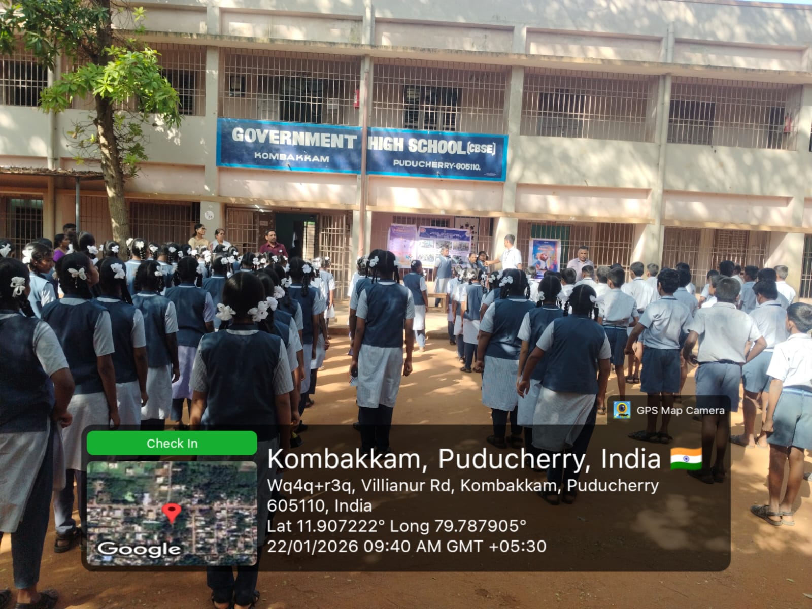An oral health and tobacco awareness program was conducted by the School - MDU team at _Government High School,_ Kombakkam, on 22/01/2026. A health talk was delivered to students on the ill effects of tobacco and the importance of preventing oral cancer. The theme *“Happy Mouth Is A… Happy Life”* was introduced to emphasize the role of good oral hygiene in overall well-being. Oral hygiene education was provided, and correct brushing techniques were demonstrated using posters, banners, and dental models.