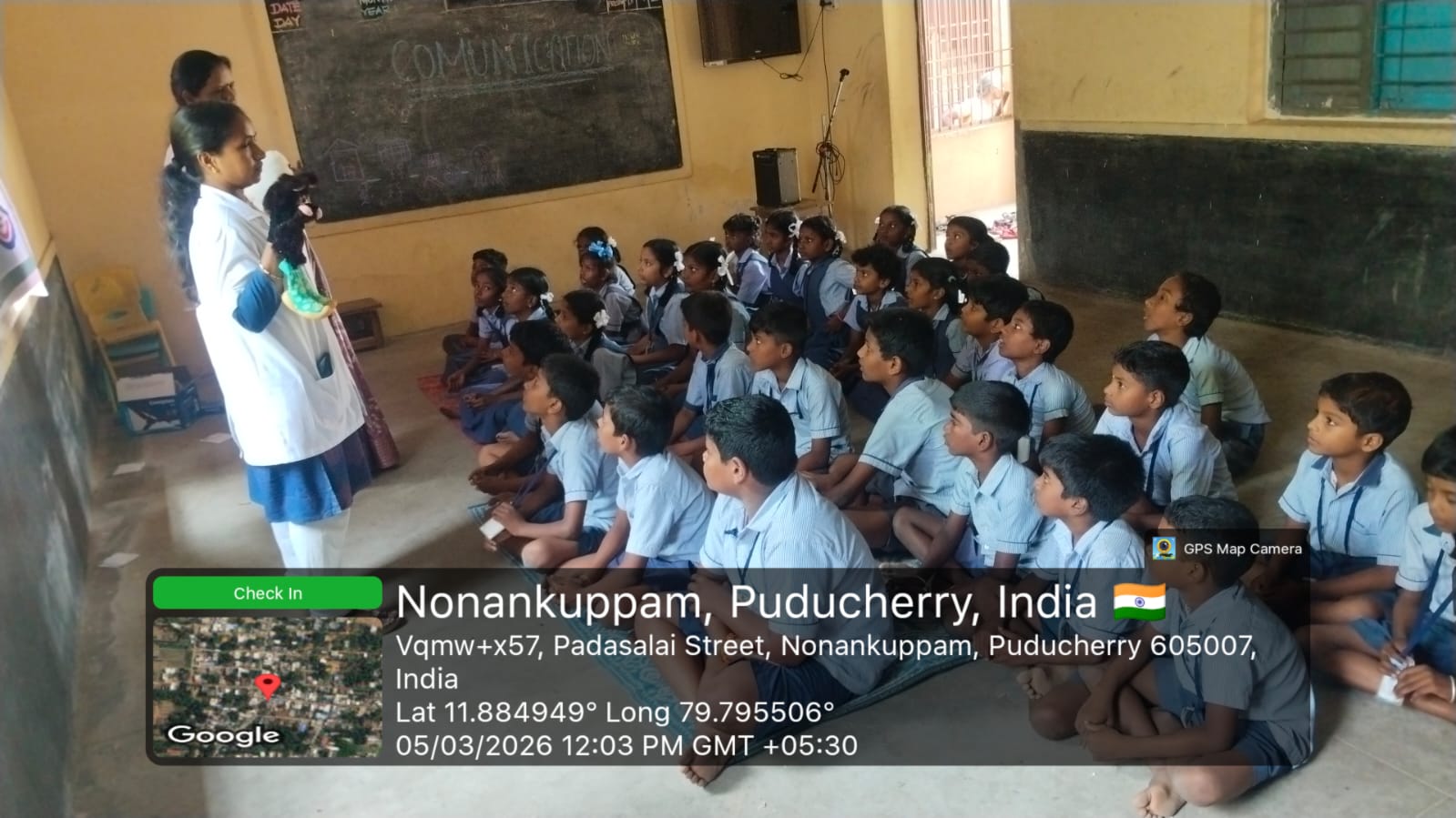 WOHD celebration :An oral health awareness session was conducted for the primary school students of *GPS Nonankuppam* on 5-3-2026. The session focused on educating children about the importance of maintaining healthy teeth and good oral hygiene habits. Students were encouraged to brush regularly and take care of their teeth to prevent dental problems. Nearly *84* students benefited from the session.
