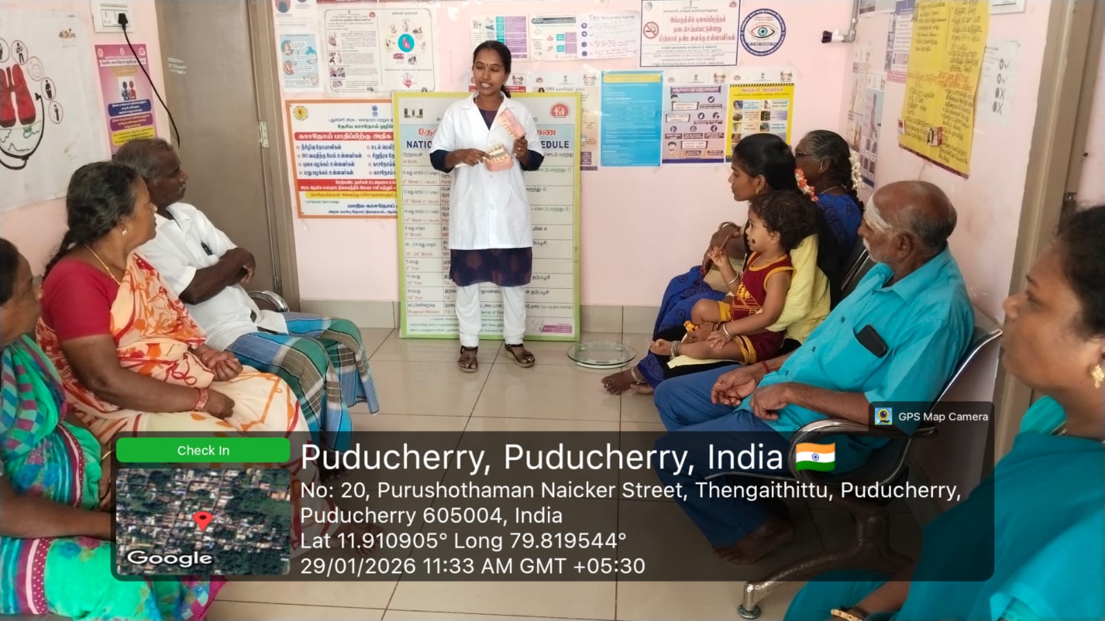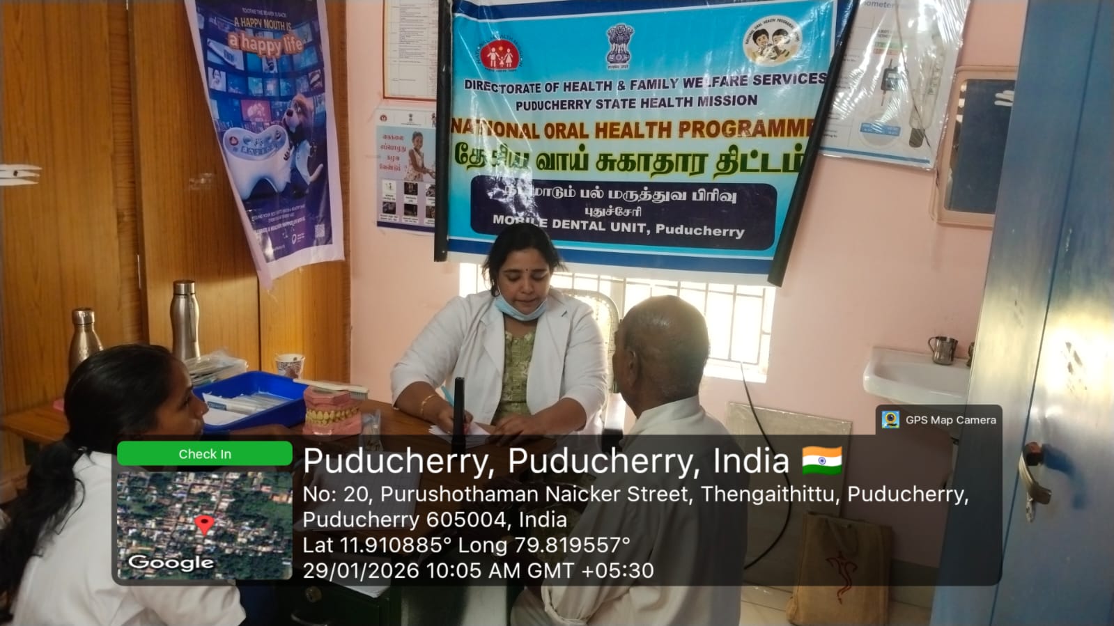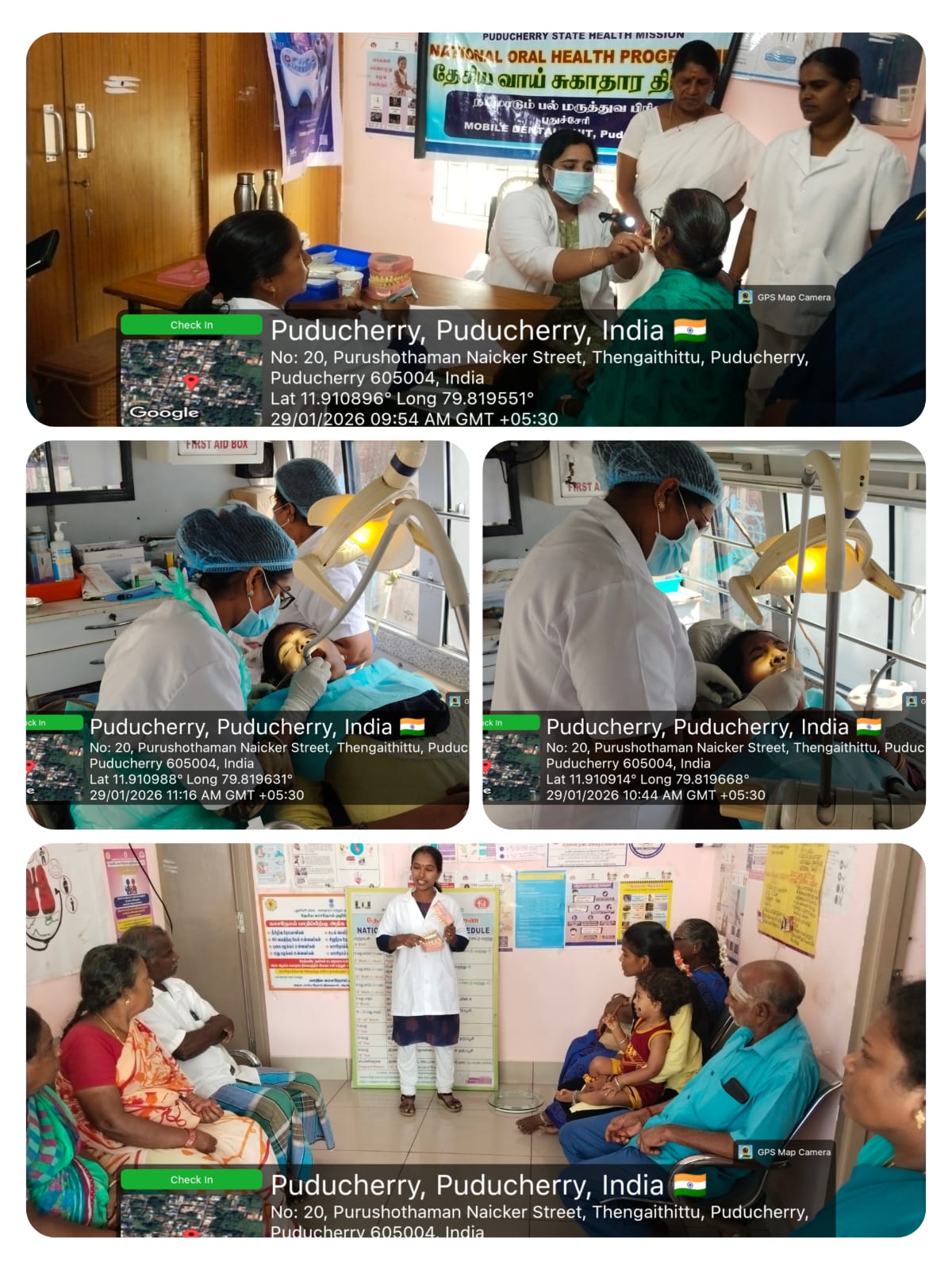 An oral screening and treatment camp was conducted at *AAM - USHC Thengaithittu* on 29-01-2026 with the objective of promoting oral health and providing essential dental services to the community. The program focused on early detection of oral diseases through systematic oral screening of the general public. Necessary basic treatments were provided, and individuals requiring further care were referred for specialized dental services.