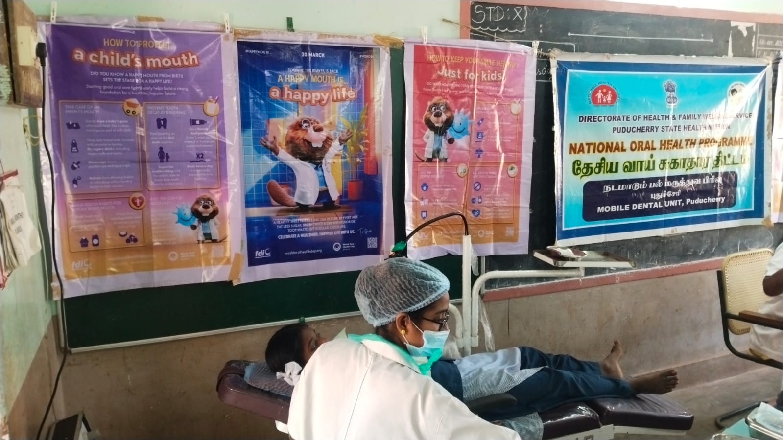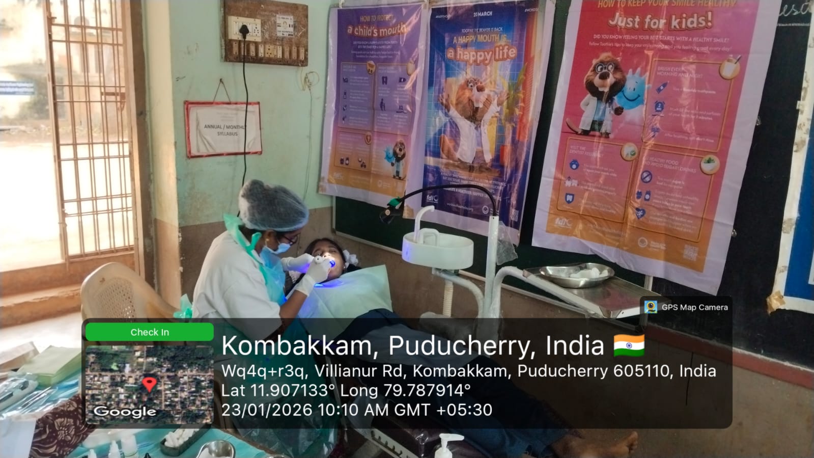 An Oral Screening and Treatment Camp was conducted at Government High School, Kombakkam, on 23.01.2026. The program aimed to improve the oral health of students through early detection and timely care. Students of seventh and eighth standards underwent oral screening, and those requiring treatment received basic dental procedures on-site. Treatments provided included permanent fillings, pit and fissure sealants, preventive restorations, glass ionomer cement restorations, and scaling. The camp helped in preventing further dental problems and promoted awareness about the importance of maintaining good oral hygiene. Overall, the initiative contributed to better oral health among students and encouraged them to adopt healthy dental practices.Nearly 25 benefitted.