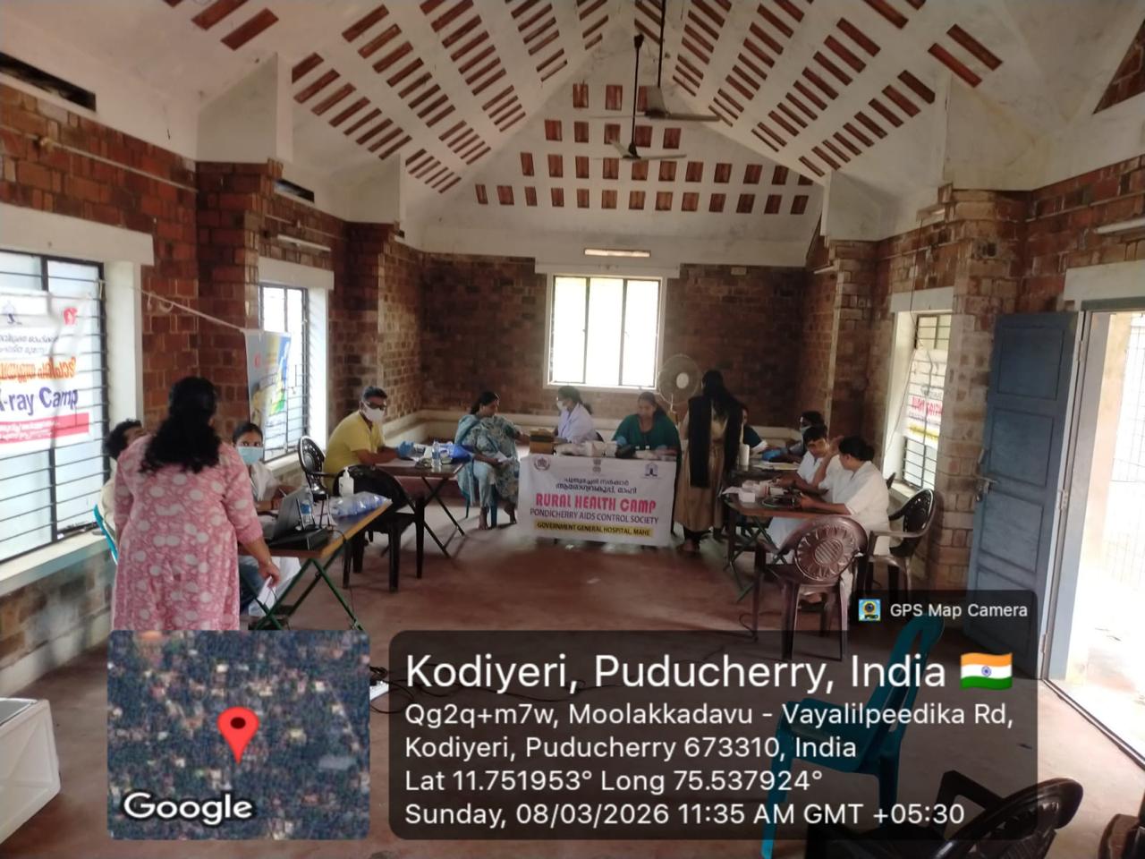A rural health camp was conducted at Kannachankandy Colony, Pandakal on 8th March 2026 (Sunday) as part of WOHD activities. The camp was organized in collaboration with Puducherry AIDS Society, NTEP, and NOHP. A total of 23 people attended, including 15 females and 8 males, benefiting from health check-ups and awareness services.