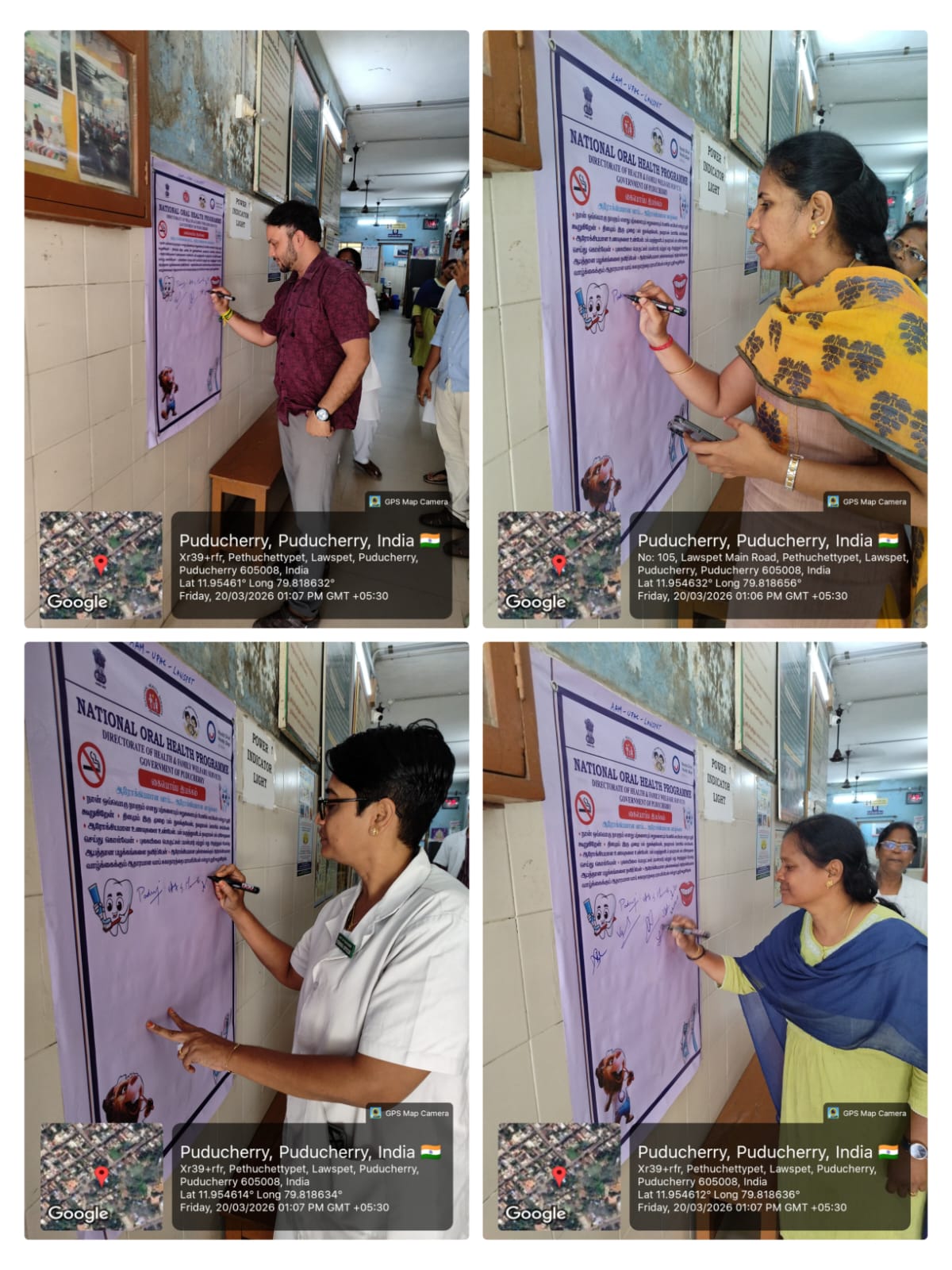 On 20.03.2026, at AAM UPHC Lawspet, a signature campaign was conducted in observance of World Oral Health Day. The activity highlighted the theme “A Happy Mouth is a Happy Life,” encouraging participants to take a pledge for maintaining good oral hygiene and adopting healthy practices for overall well-being.
