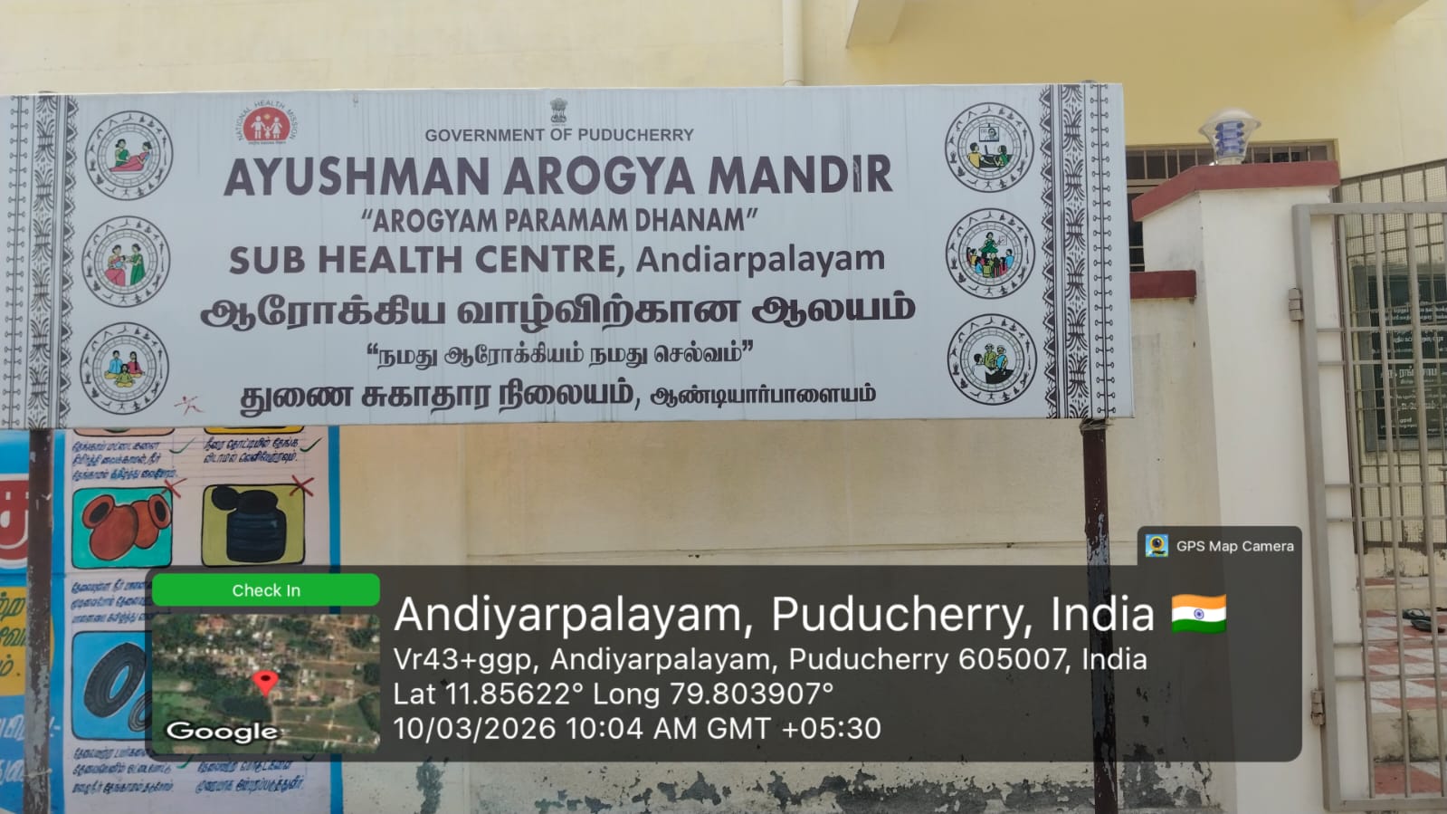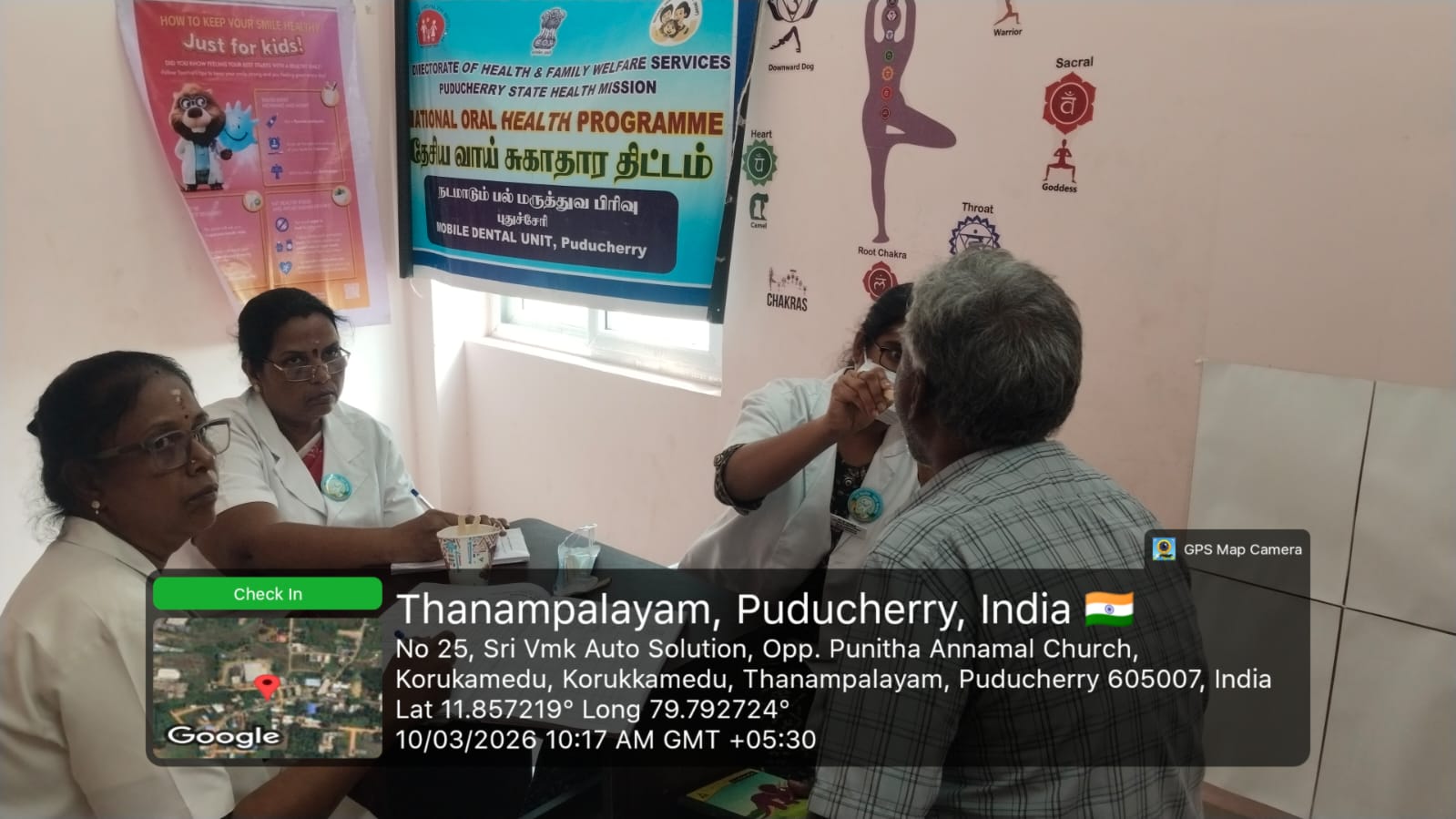 As part of the *World Oral Health Day celebration,* an oral screening camp was conducted at *AAM- SHC - Andiarpalayum* on 10/3/26 for *NCD* patients. The program focused on promoting good oral hygiene and the importance of maintaining a healthy mouth for overall well-being. During the camp, oral examinations were carried out to identify common dental problems and patients were advised about appropriate treatment and preventive care. Tobacco awareness was also provided, highlighting the harmful effects of tobacco on oral and general health. Brushing techniques and basic oral hygiene practices were demonstrated to the participants. Informative guidance on maintaining proper oral health was given to the general public. Nearly *61* beneficiaries attended and benefited from the screening and awareness session.