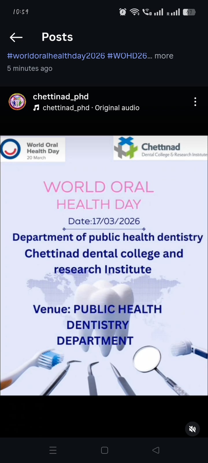 As part of the World Oral Health Day campaign, students from the Department of Public Health Dentistry at Chettinad Dental College and Research Institute, Kelambakkam, Chennai, organized an outreach program at the peripheral center in Manamai. The program focused on promoting oral health awareness through interactive and educational activities.