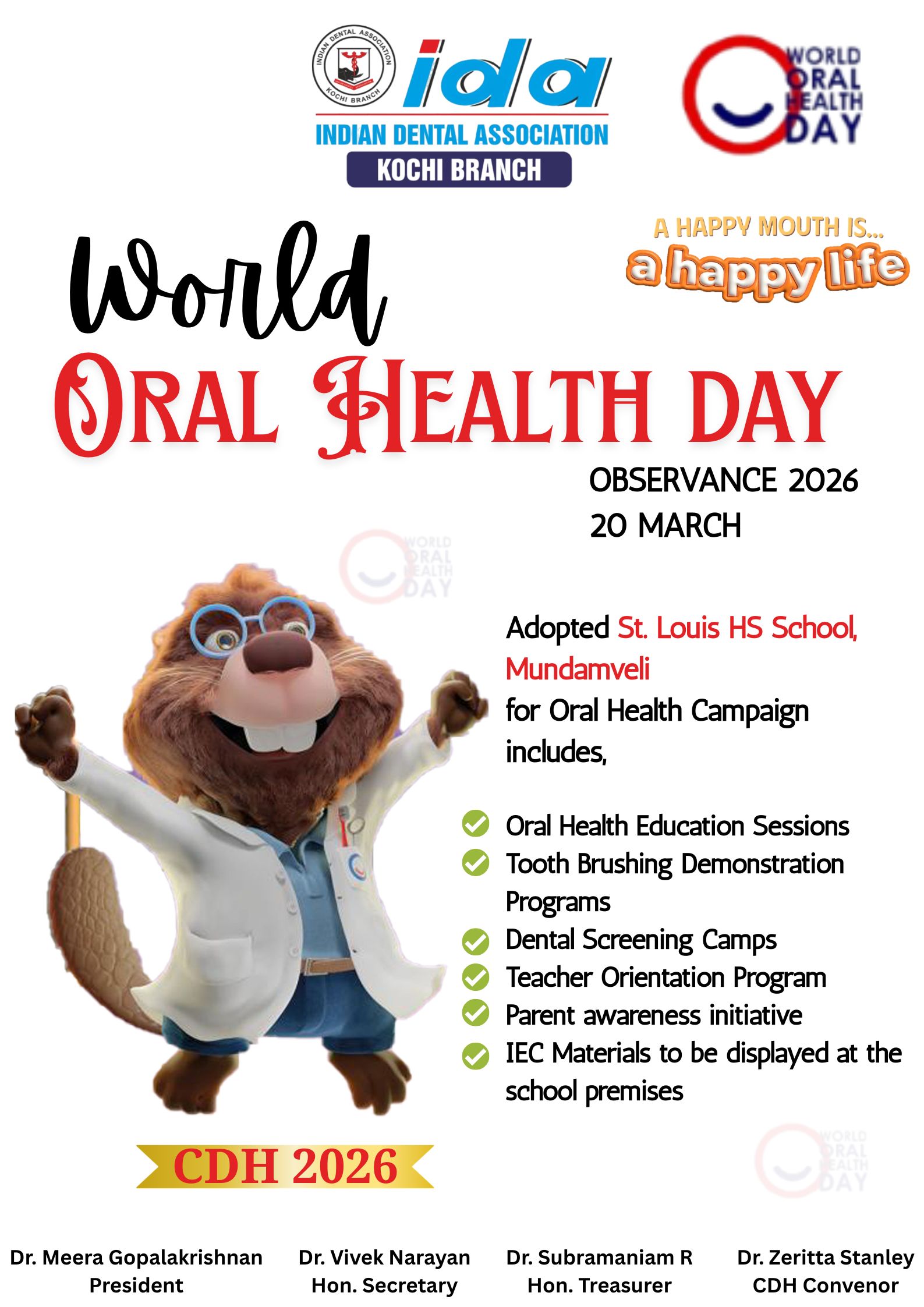 As part of our commitment to promoting preventive oral healthcare, St. Louis HS School, Mundamveli has been adopted under our Oral Health Promotion Program for the period from 20/03/2026 to 01/08/2026. This initiative aims to create sustained awareness and encourage healthy oral hygiene practices among students, teachers, and parents.