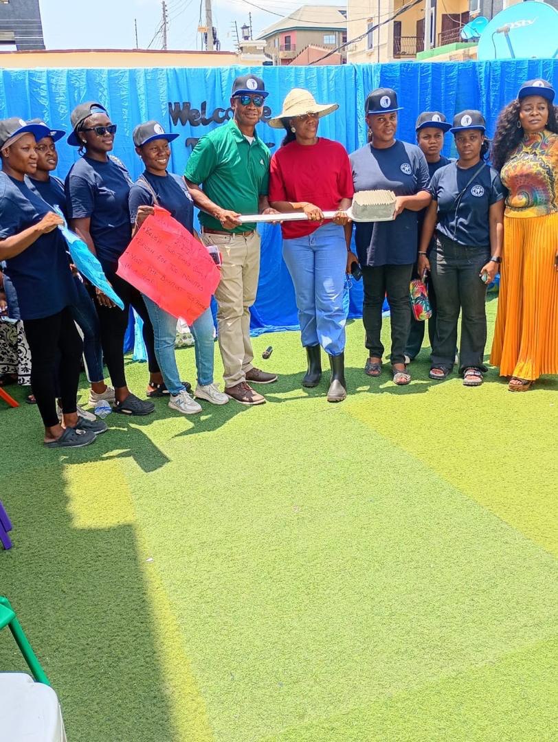 7. A photograph of the Head of the Market Council, Isolo, with the leadership and staff of the Dentists on the Wheel Healthcare Foundation.