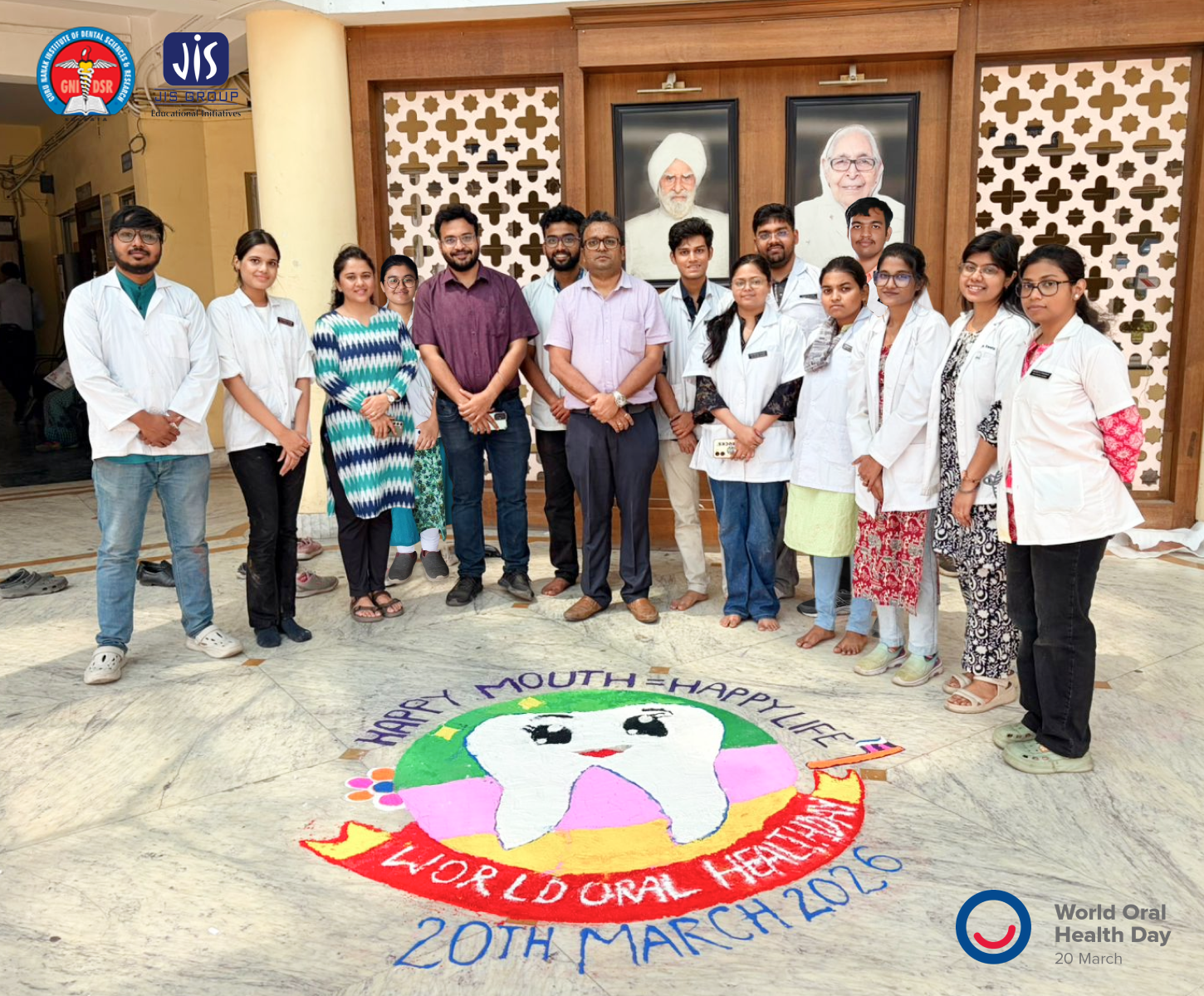 To commemorate World Oral Health Day 2026, Final Year BDS students from the Department of Public Health Dentistry at Guru Nanak Institute of Dental Sciences and Research (GNIDSR), Kolkata, created a large-scale Rangoli as a creative initiative to raise awareness about the importance of oral health.