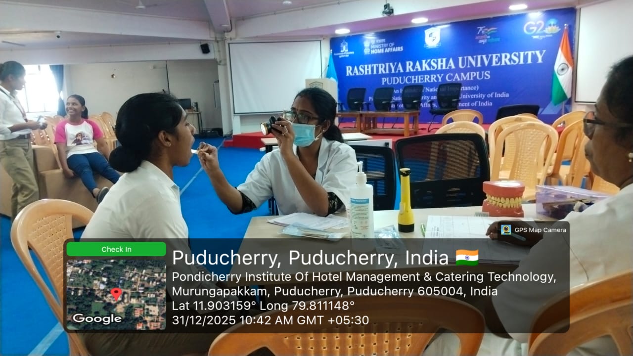 A three-day intensified dental treatment camp was conducted for the students of Rashtriya Raksha University, followed by a comprehensive oral health screening camp.