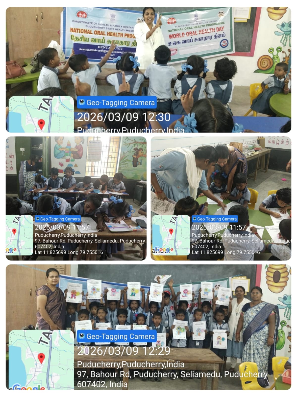 AAM Bahour World Oral Health Day 2026 celebrations, Drawing and colouring competition_ was conducted at GPS Seliyamedu pet on 9/03/26.The theme Happy Mouth is a Happy Life the colouring competition, expressing their ideas on good oral hygiene practices. A special oral health awareness talk was also delivered to students and teachers, emphasizing proper brushing techniques, healthy eating habits, and the importance of regular dental check-ups. Around 20 students from pre primary and class I participated. The program was organised by AAM Bahour
