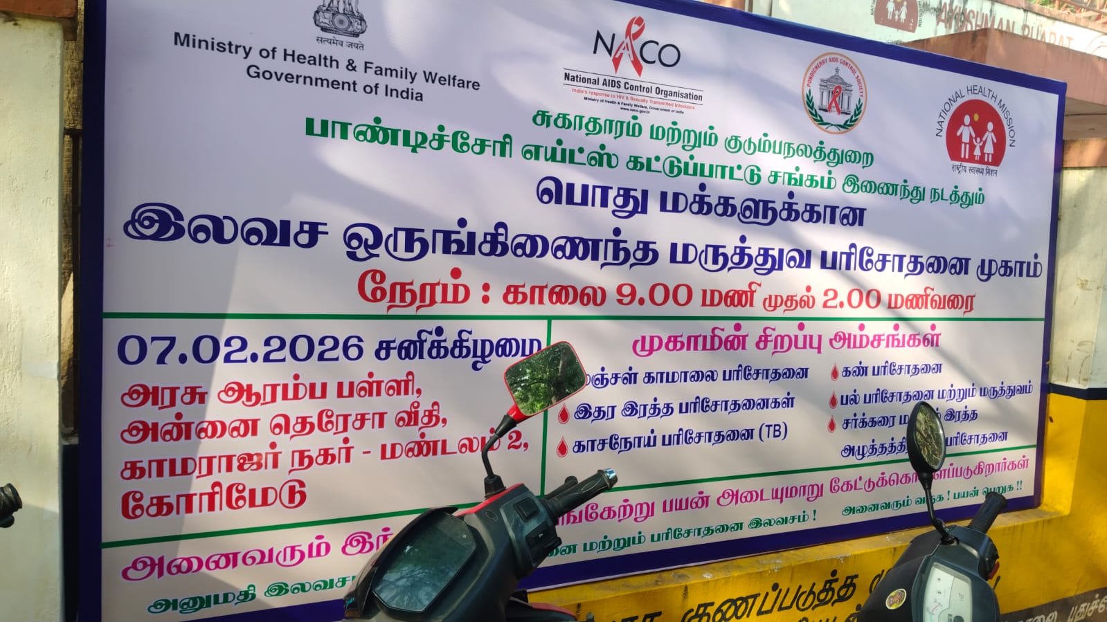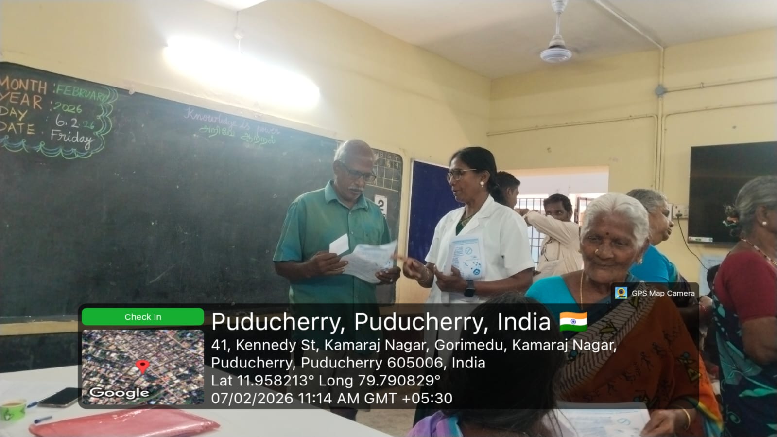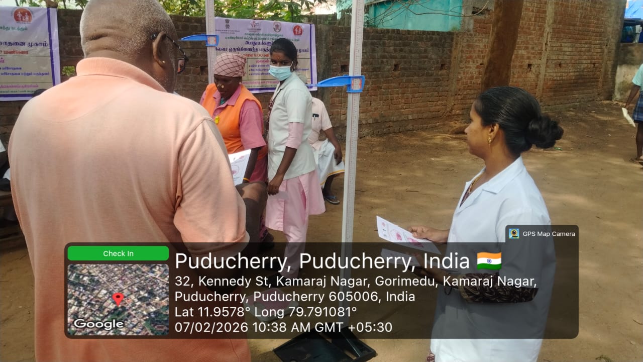 An *Oral Screening* and *Oral Awareness* Camp was successfully organized at *GPS Kamaraj Nagar* , under *PHC Gorimedu* , in collaboration with the *Pondicherry AIDS Control Society (PACS)* and *National AIDS Control Organization (NACO).* The event formed part of an *Integrated Health Camp* held on February 7, 2026.