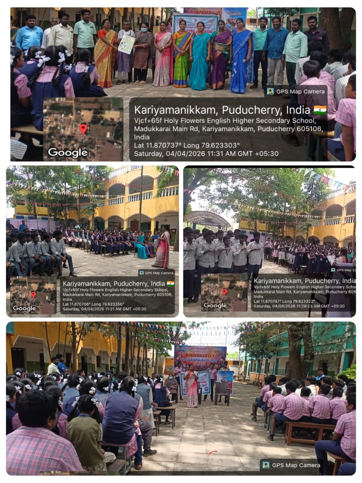 04.04.26 AAM PHC Nettapakkam # WOHD Celebration @ Holy Flowers English Higher Secondary School, Kariamanickam: The students were given awareness on Oral health - Do's and don'ts in oral care, Common dental problems and management, Bad oral behaviours and its intervention and management. Harmful effects of Tobacco and its vulnerability among adolescents were highlighted. Brushing techniques were demonstrated using dental models and posters. Oral health poster and pamphlets were distributed. Oral hygiene pledge was taken.