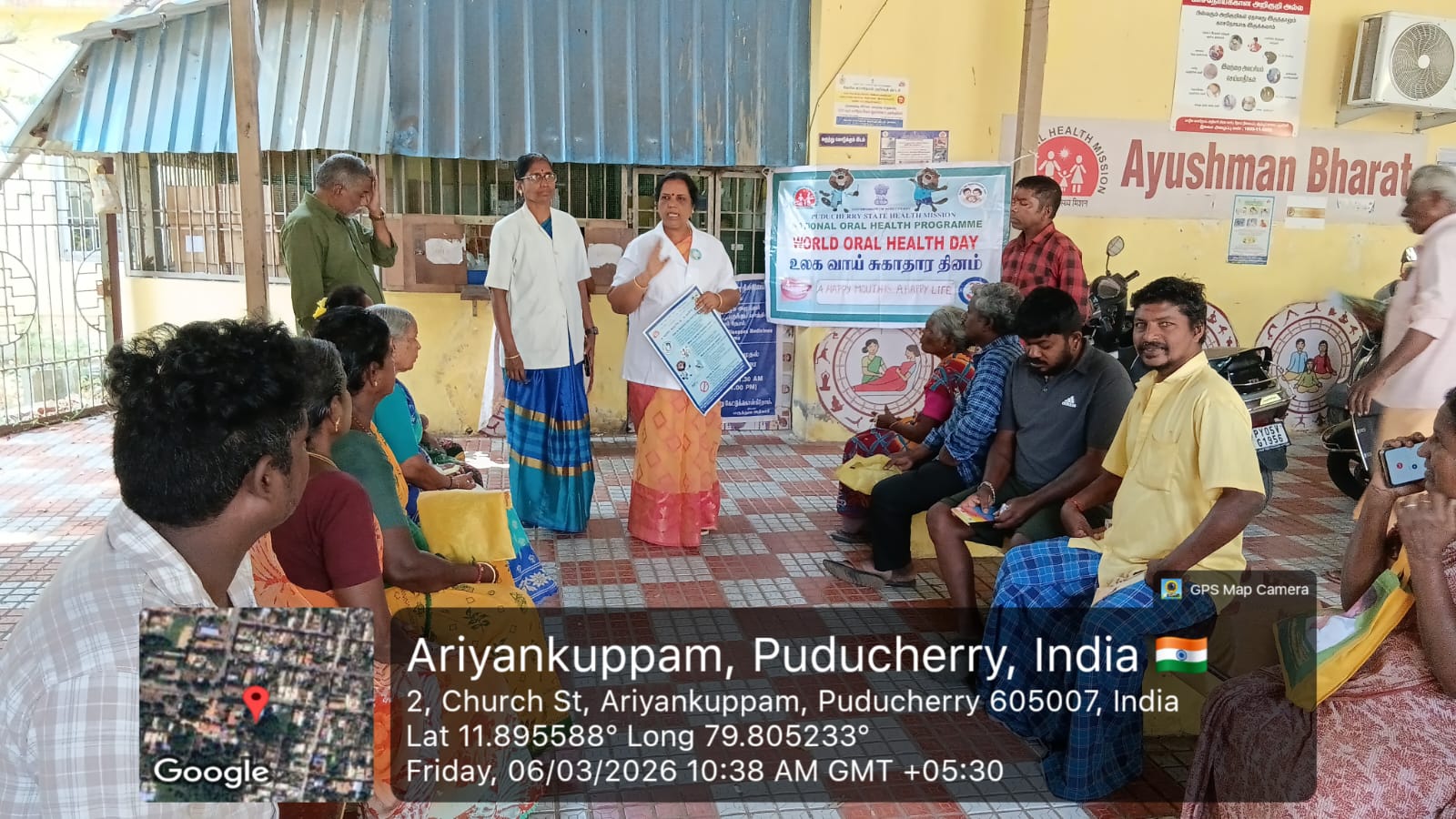 Patients were educated about the importance of maintaining good oral hygiene and poster was given to Medical Officer at Ariyankuppam Primary Health Centre. Almost 30 benefitted from this awareness session.