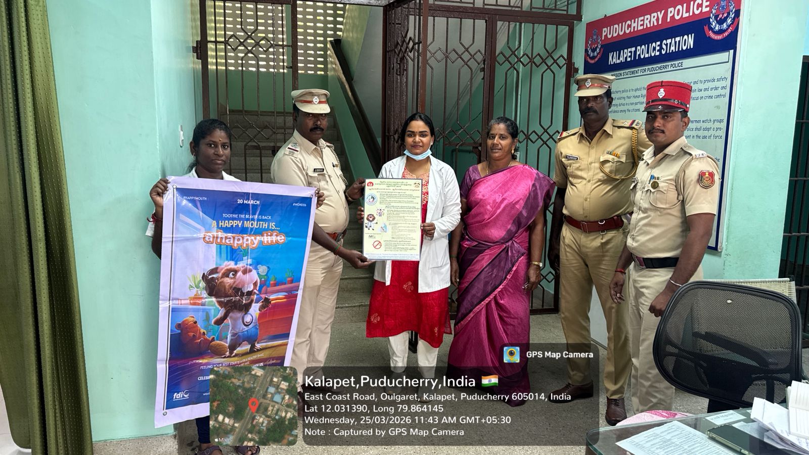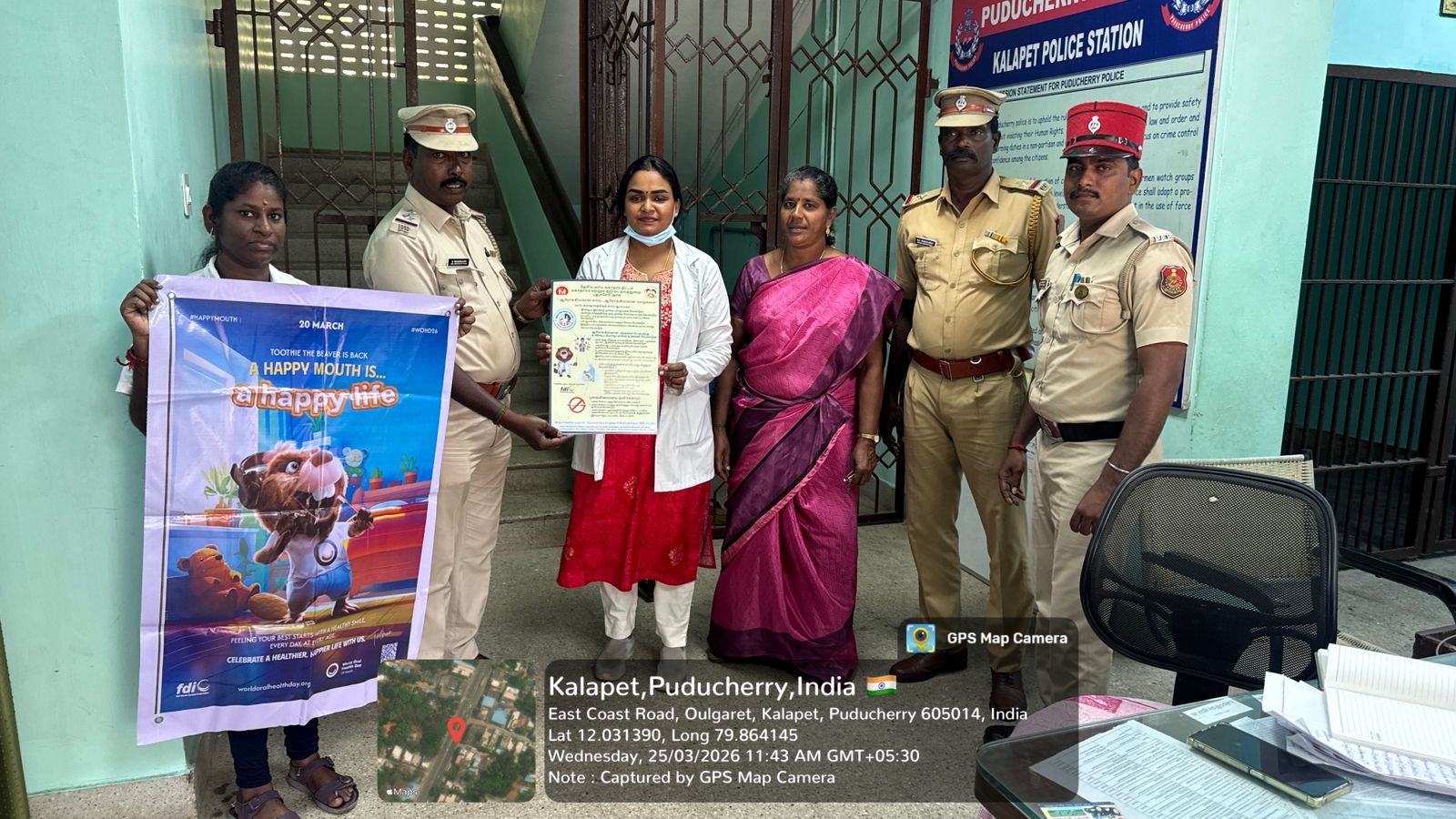 On the occasion of World Oral Health Day 2026, an oral health awareness program was conducted at B2 Kalapet Police Station. Oral hygiene instructions were provided to the participants, emphasizing proper brushing techniques and the importance of maintaining good oral health.