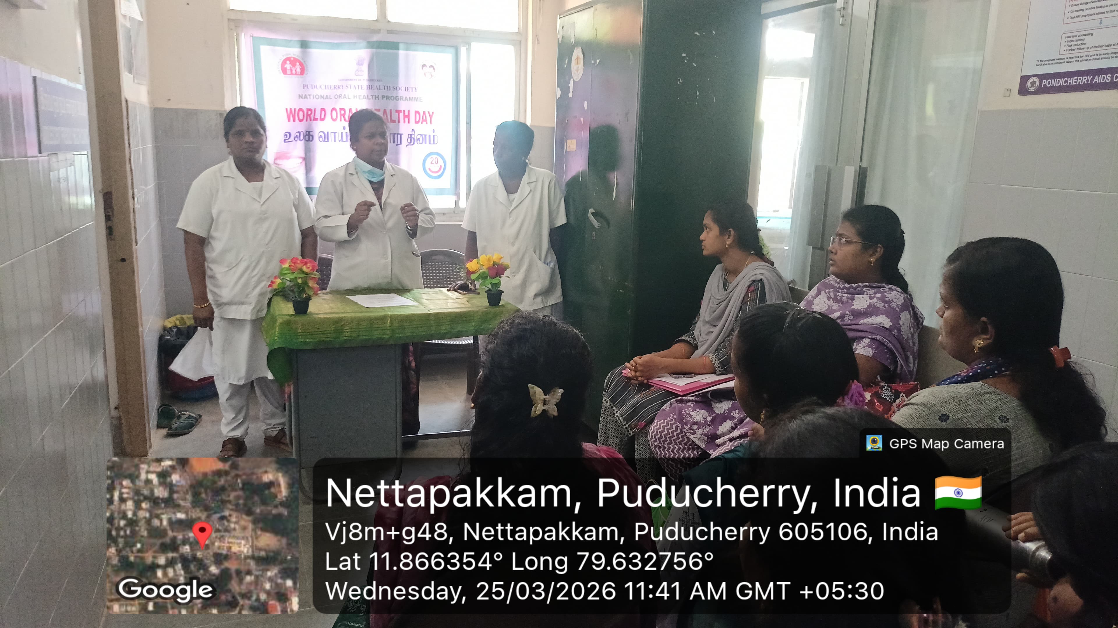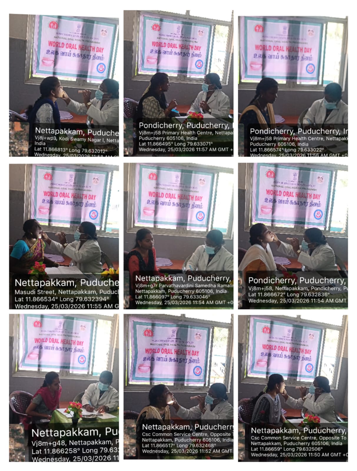 25/03/26 Dental Unit - PHC Nettapakkam # WOHD 2026 Celebration @ ANC CLINIC: An Awareness session was conducted on the topic " Importance of Oral health on Pregnancy". Good dietary habits and good oral hygiene habits were explained as it is crucial for both mother and baby to prevent low birth weight , preterm and preeclampsia. The ill effects of Tobacco and its impact on mother and baby were highlighted. Dos and don'ts in oral care were stressed upon . Brushing techniques were demonstrated using dental models and posters. Oral hygiene pledge was taken. Oral screening was done for early diagnosis and treatment plan. The needy were referred to dental OPD for dental management. Oral health pamphlets were distributed to promote good oral hygiene practices and for future references.Beneficiaries: 67