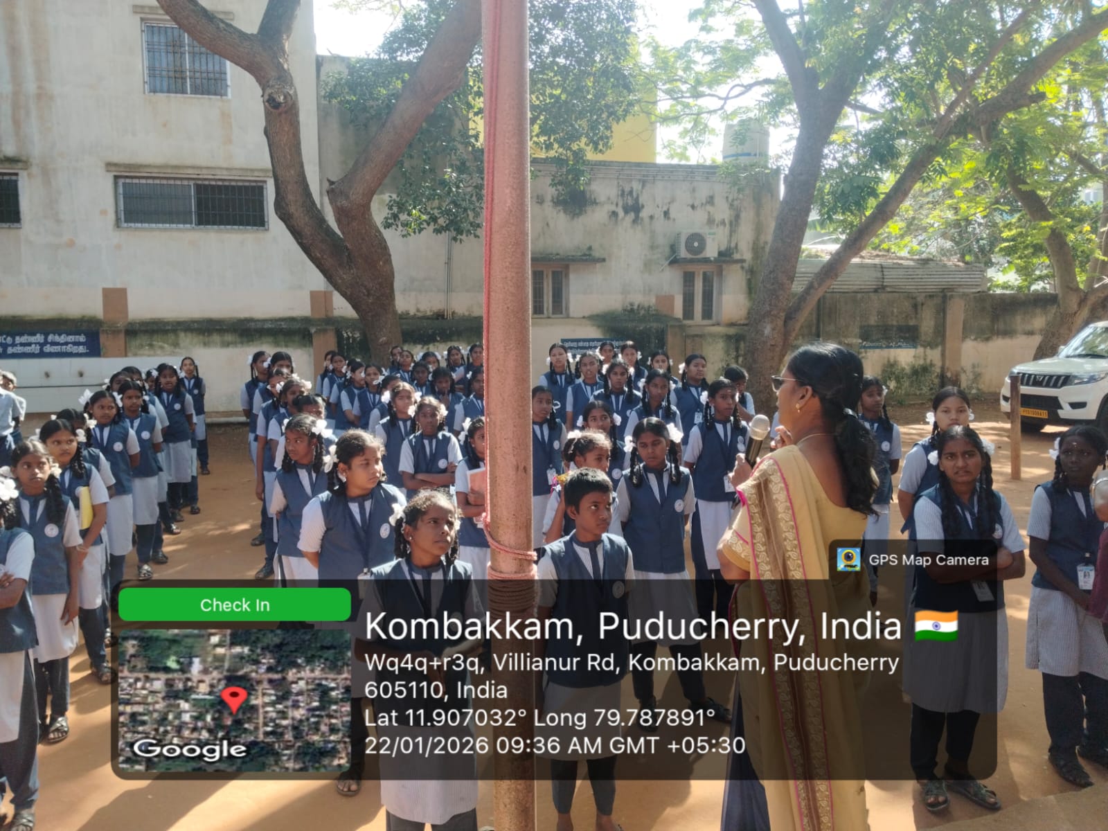An oral health and tobacco awareness program was conducted by the School - MDU team at _Government High School,_ Kombakkam, on 22/01/2026. A health talk was delivered to students on the ill effects of tobacco and the importance of preventing oral cancer. The theme *“Happy Mouth Is A… Happy Life”* was introduced to emphasize the role of good oral hygiene in overall well-being. Oral hygiene education was provided, and correct brushing techniques were demonstrated using posters, banners, and dental models.