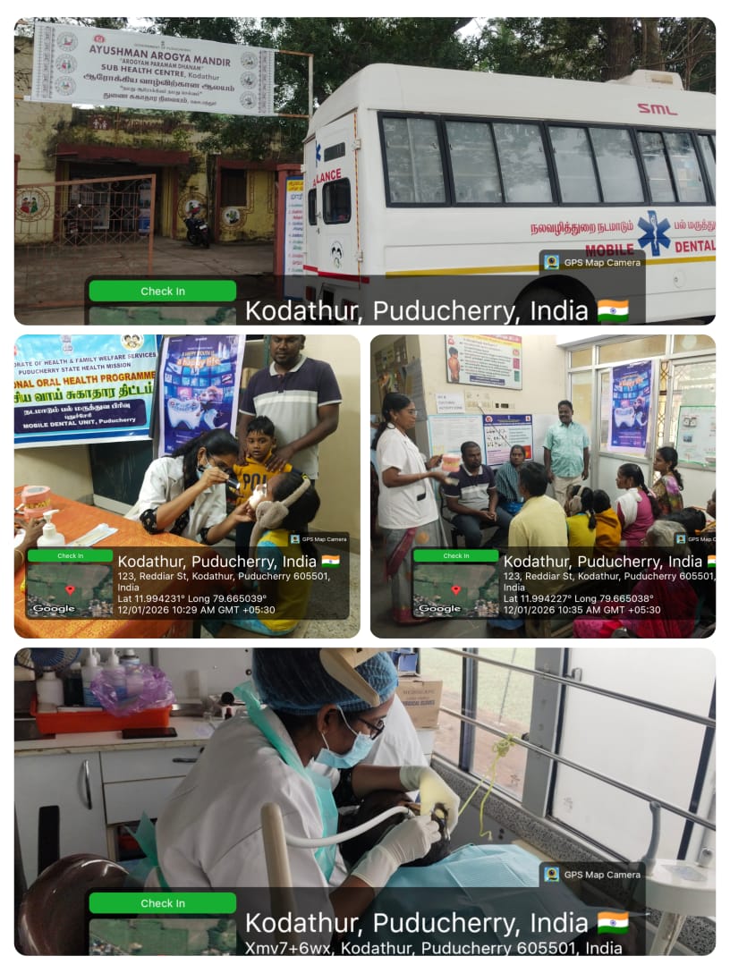 On 12/01/2026, an Oral Screening and Treatment Camp was successfully conducted at AAM – SC, Kodathur. The program aimed at improving oral health awareness among the general public including ANC mothers and wellbaby clinic. An Anti-Tobacco Awareness Program was organized to educate people on the harmful effects of tobacco use and to promote a tobacco-free lifestyle. Oral hygiene instructions were provided, emphasizing the importance of regular brushing and proper dental care practices. Brushing techniques were effectively demonstrated using dental models to ensure better understanding. The camp received a positive response, and nearly 49 beneficiaries were screened and guided for maintaining good oral health.