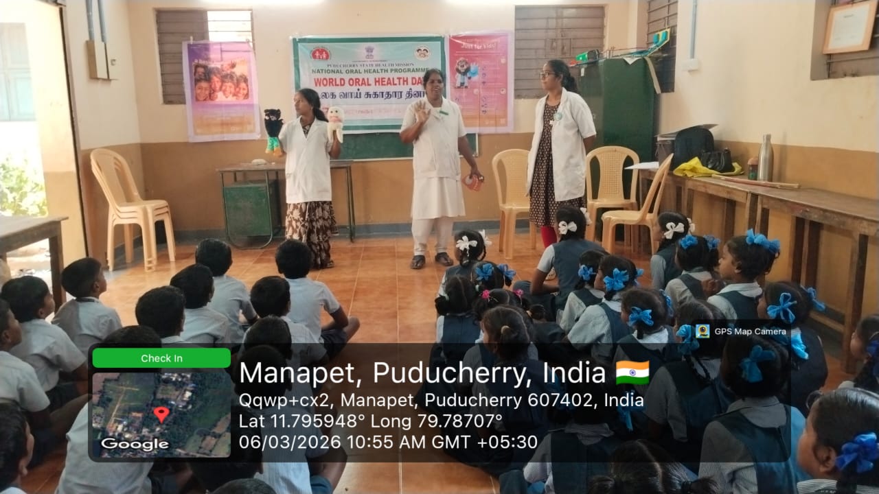 As part of the *World Oral Health Day celebration,* an oral health awareness session was conducted at *GPS Kanniakoil* at 6/3/26 for primary school students. The theme “ *Happy Mouth is a Happy Life”* was explained, and the importance of maintaining good oral hygiene was highlighted. Nearly *65* students benefited from the program.