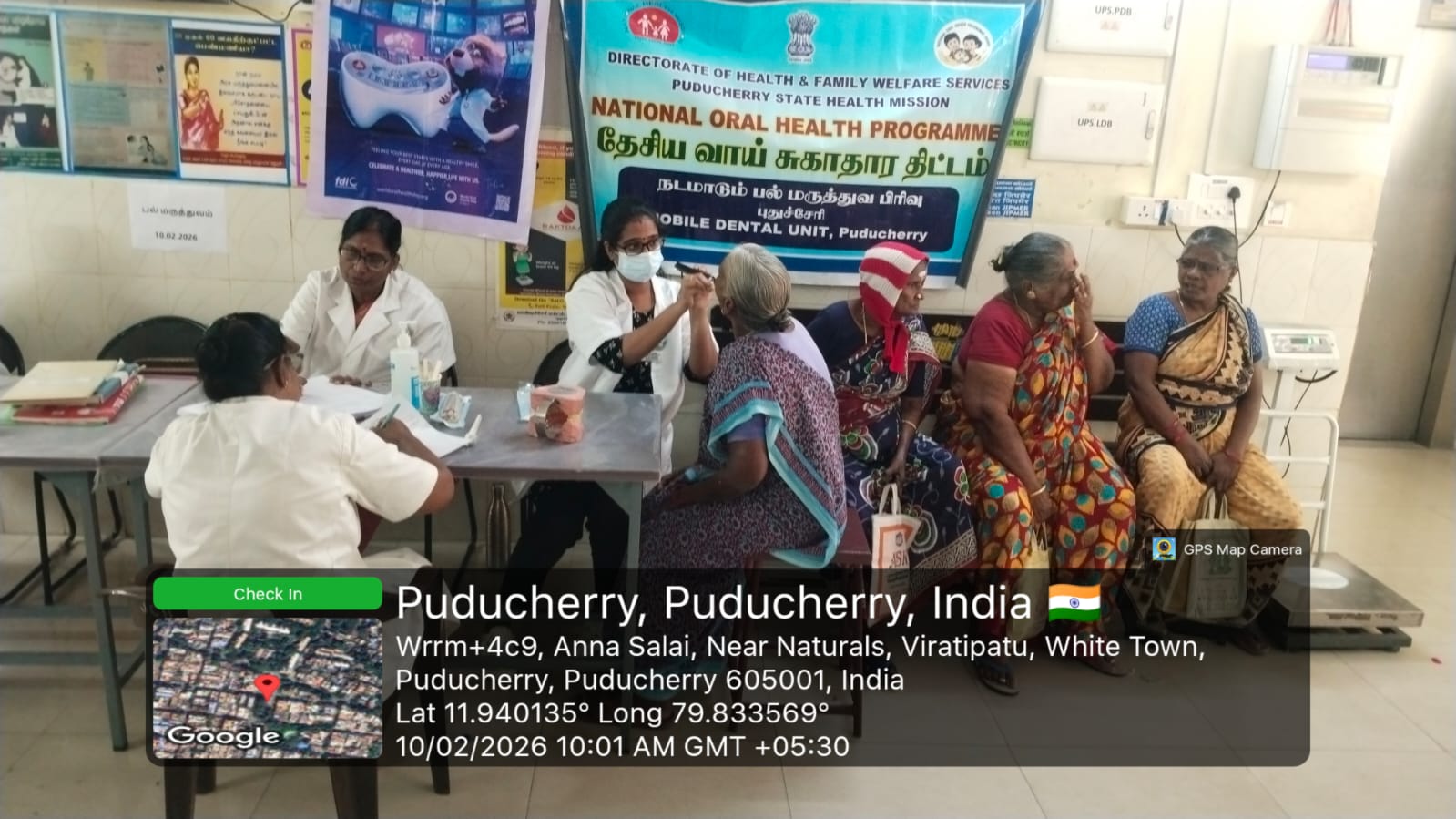 An oral screening and treatment camp was conducted at *AAM JIPMER Urban Health Centre, Kurusukuppam* on 10-02-2026. During the camp, oral health screening was carried out for patients attending the *NCD* clinic. The patients were examined for dental caries, gum diseases, oral infections, and early signs of oral cancer. Necessary treatment such as oral prophylaxis, medication advice, and referral for advanced care were provided based on individual needs. Oral health awareness was also given to the patients, emphasizing the importance of maintaining good oral hygiene to prevent complications related to diabetes, hypertension, and other non-communicable diseases. Instructions on correct brushing technique, healthy dietary habits, and harmful effects of tobacco and alcohol use were explained. IEC materials were displayed to reinforce key messages. Nearly *47* beneficiaries attended and benefited from the screening, treatment services, and health education provided during the camp.