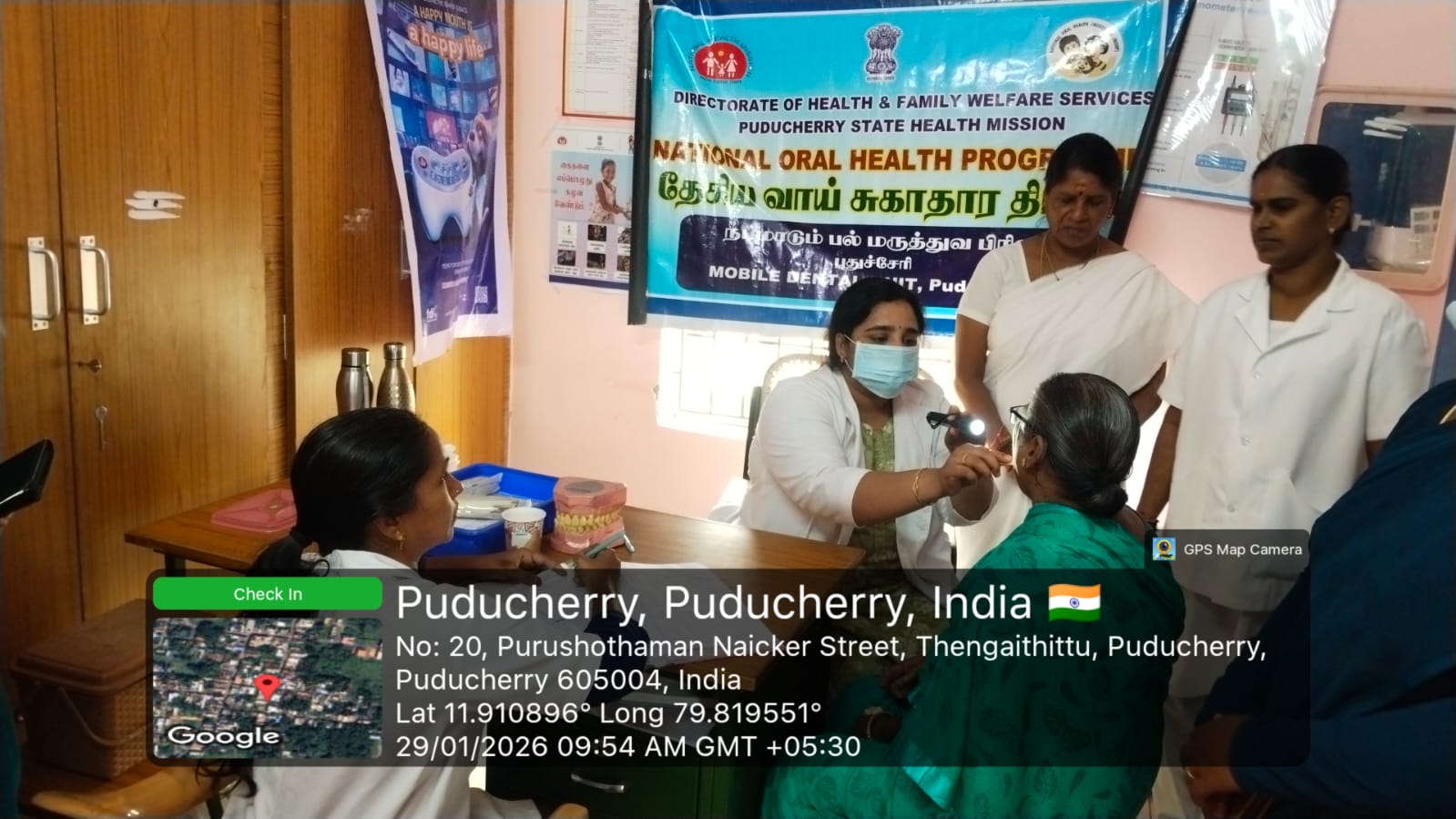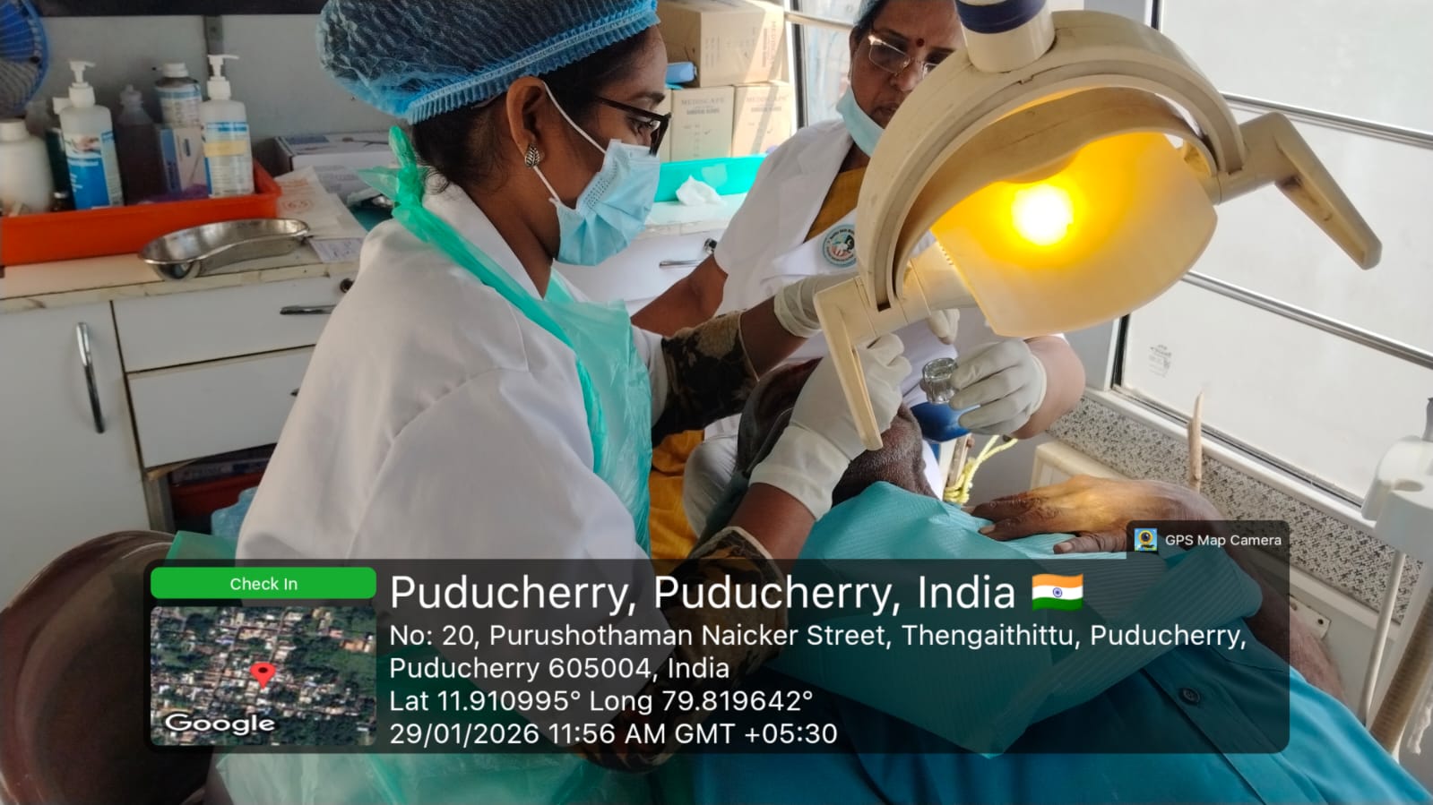 An oral screening and treatment camp was conducted at *AAM - USHC Thengaithittu* on 29-01-2026 with the objective of promoting oral health and providing essential dental services to the community. The program focused on early detection of oral diseases through systematic oral screening of the general public. Necessary basic treatments were provided, and individuals requiring further care were referred for specialized dental services.