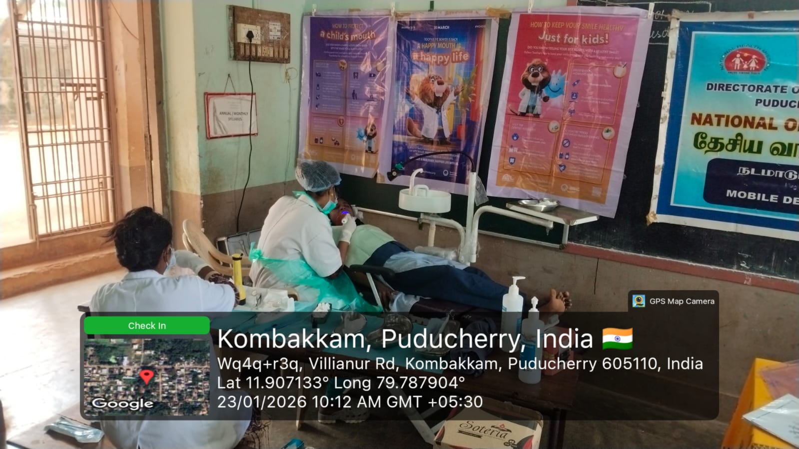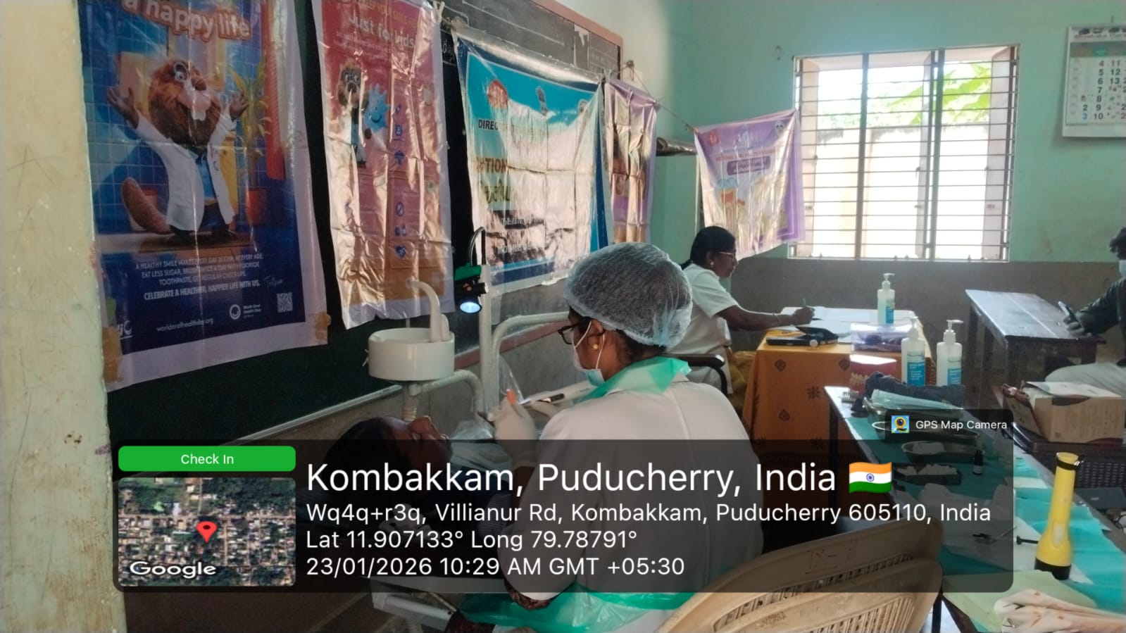 An Oral Screening and Treatment Camp was conducted at Government High School, Kombakkam, on 23.01.2026. The program aimed to improve the oral health of students through early detection and timely care. Students of seventh and eighth standards underwent oral screening, and those requiring treatment received basic dental procedures on-site. Treatments provided included permanent fillings, pit and fissure sealants, preventive restorations, glass ionomer cement restorations, and scaling. The camp helped in preventing further dental problems and promoted awareness about the importance of maintaining good oral hygiene. Overall, the initiative contributed to better oral health among students and encouraged them to adopt healthy dental practices.Nearly 25 benefitted.